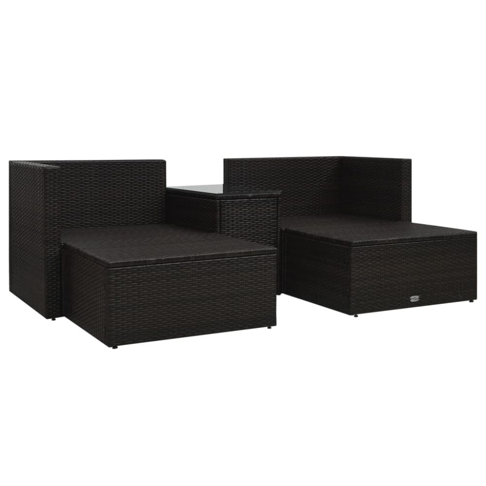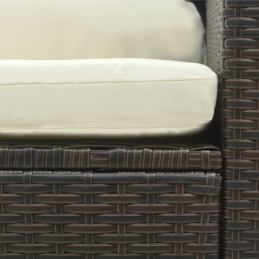 5 pcs conjunto lounge jardim c/ almofadões vime PE castanho - PORTES GRÁTIS