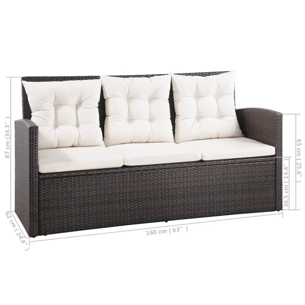 Este conjunto de sofás em vime, composto por 2 sofás de 3 lugares, 2 poltronas, 1 mesa e 16 almofadões, proporcionará uma elegante área de estar para o seu jardim ou pátio.