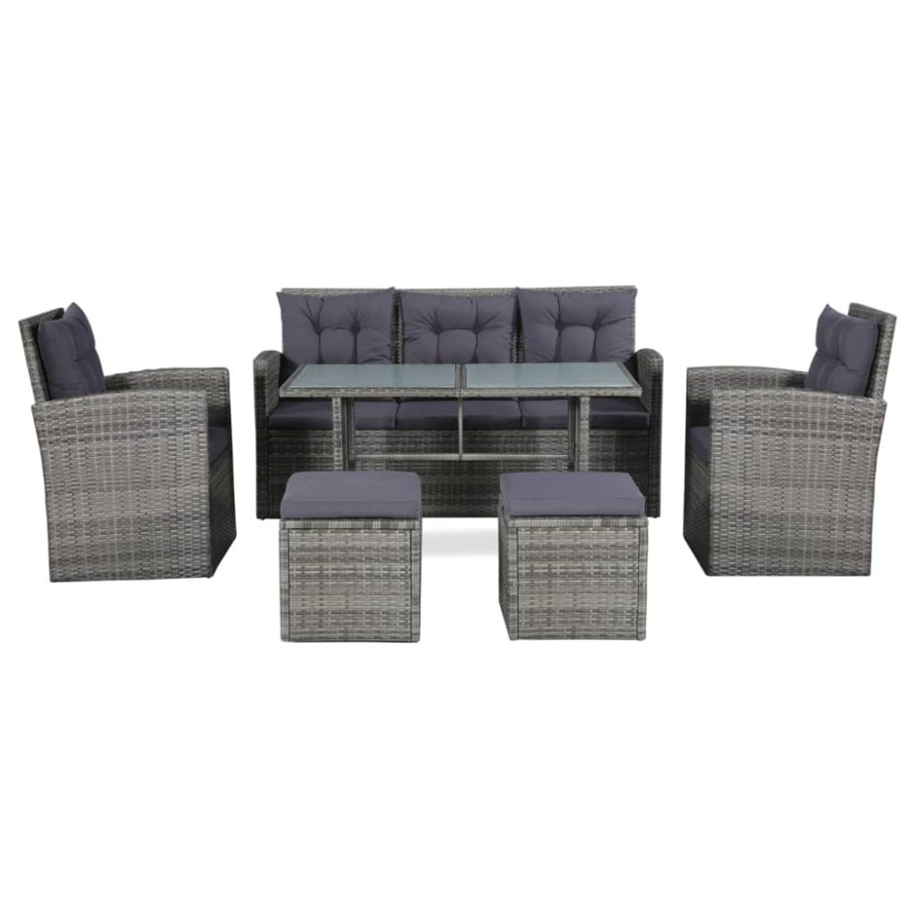 6 pcs conjunto lounge de jardim c/ almofadões vime PE cinzento - PORTES GRÁTIS