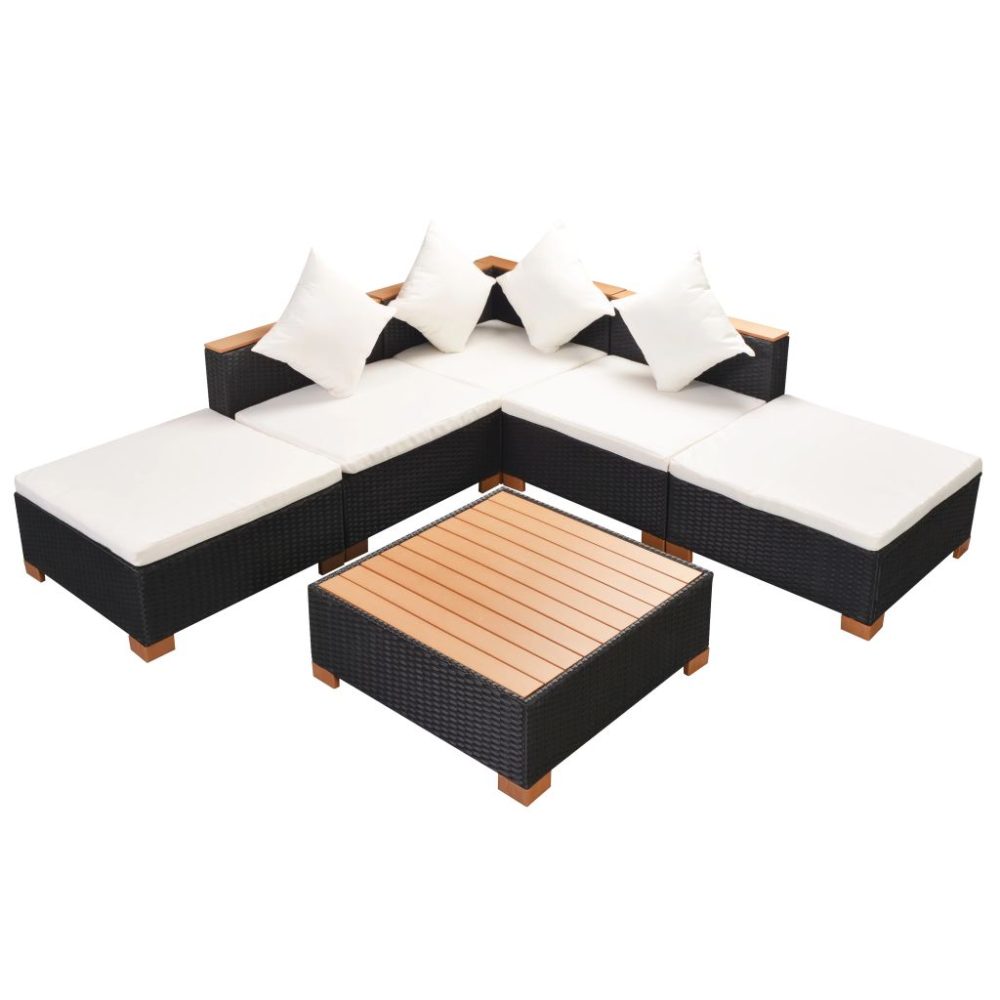 Este conjunto de sofás, fácil de limpar e resistente, é feito em vime PE resistente às intempéries, o que o torna adequado para o uso diário ao ar livre. Os segmentos de sofá possuem uma estrutura de aço revestido a pó robusta e durável. Os almofadões de assento e as almofadas removíveis são muito confortáveis. As capas de poliéster fáceis de limpar podem ser removidas e lavadas. O tampo da mesa e o topo dos apoios de braços são feitos em WPC durável com uma cor castanha. O conjunto de sofás em vime é completamente modular e pode ser facilmente movido para se adequar a qualquer configuração.