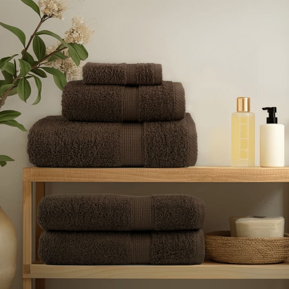 6pcs Conjunto toalhas banho premium SOLUND 600 gsm castanho - PORTES GRÁTIS