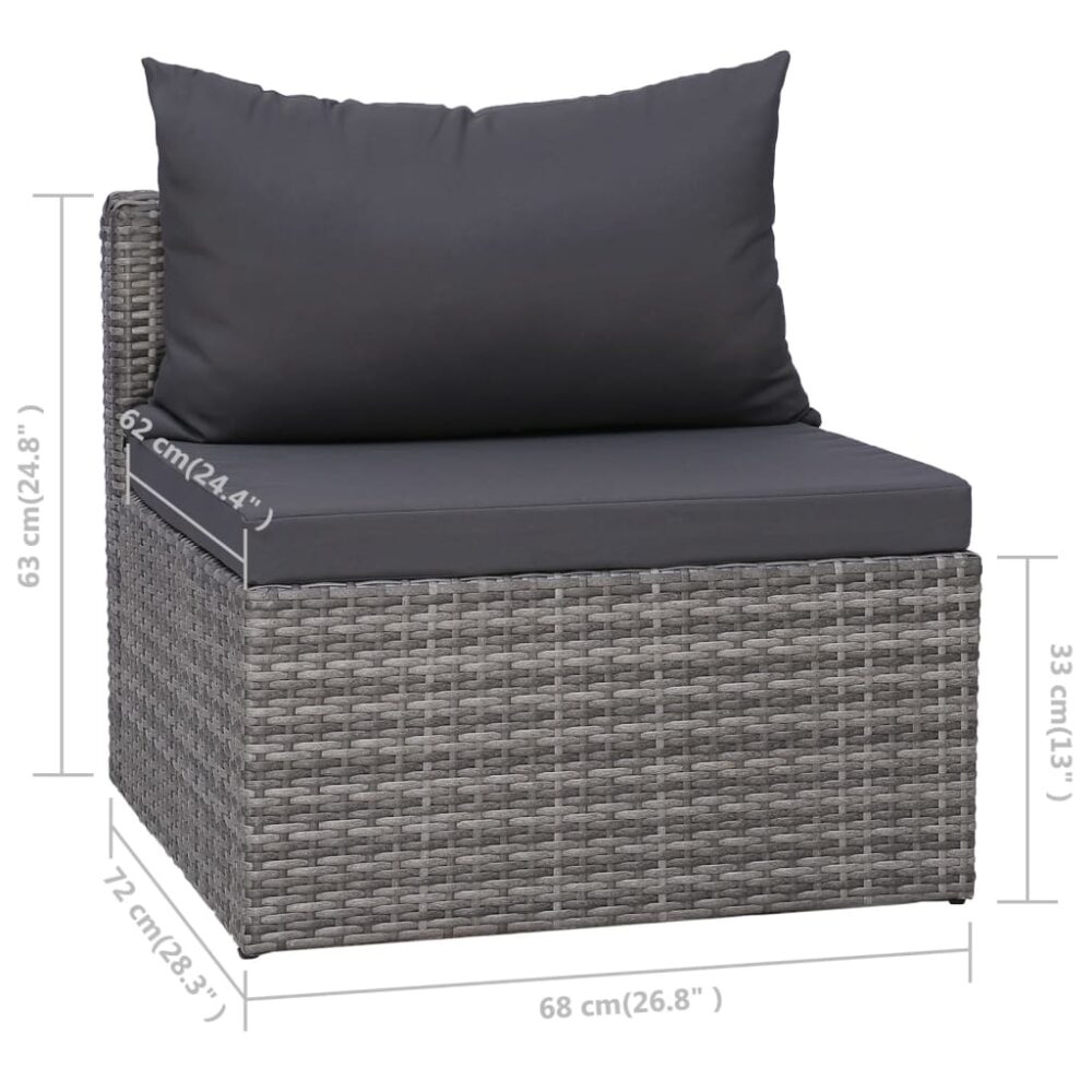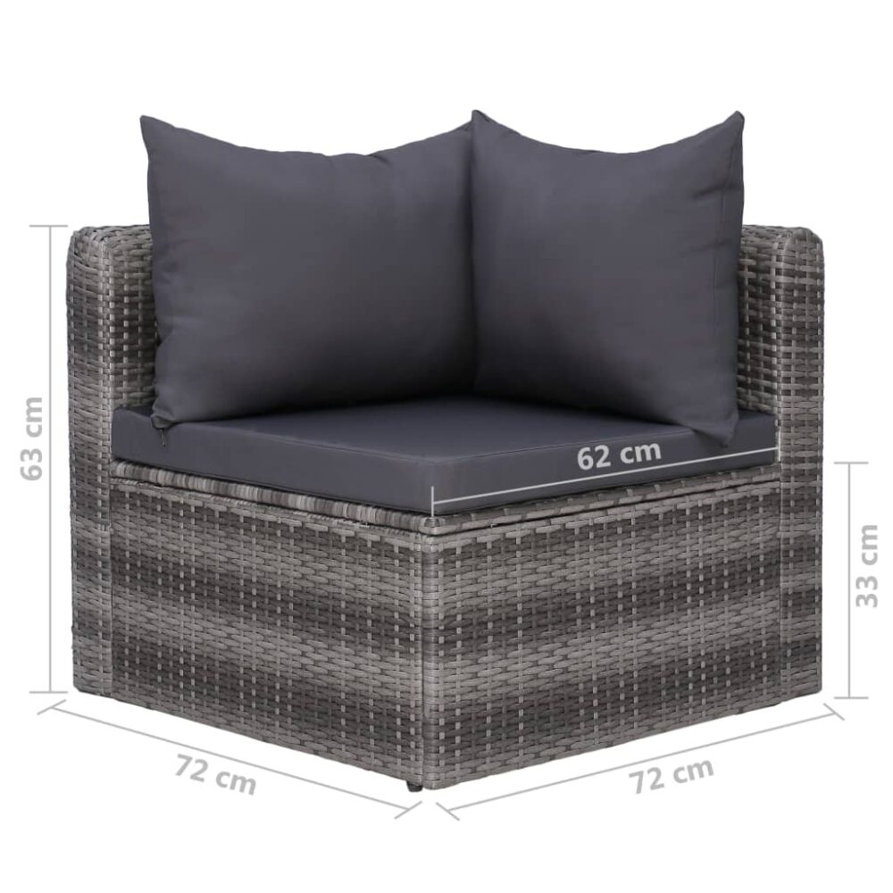 Este conjunto de sofás em vime PE, composto por 3 sofás de canto, 4 sofás de centro, 1 mesa de centro, 7 almofadões de assento e 10 almofadas de encosto, oferecerá uma generosa, moderna e elegante área de estar para o seu jardim ou pátio.