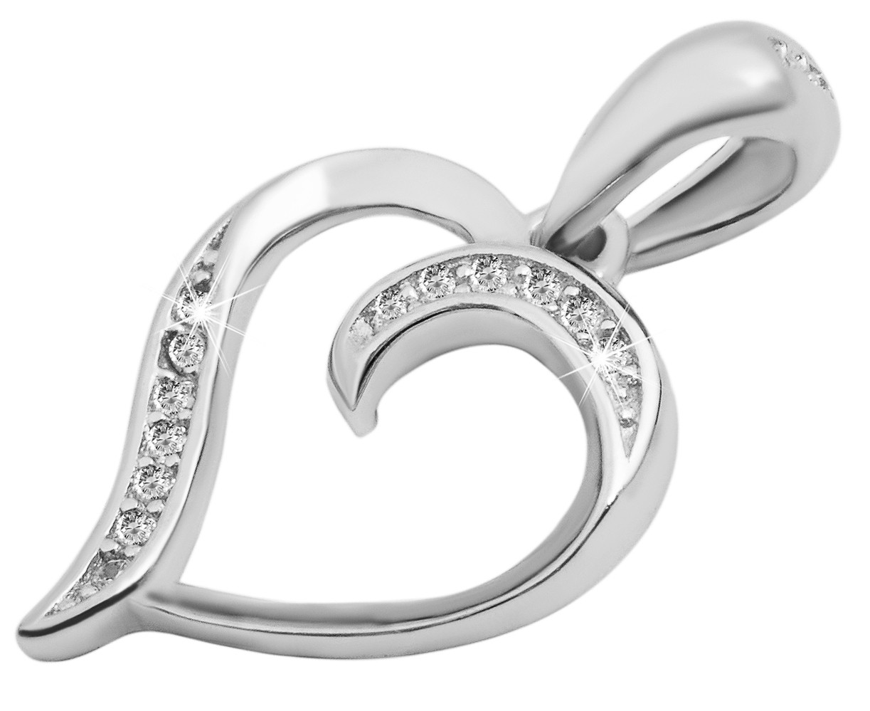 O elegante pingente feminino em forma de coração é feito de prata esterlina 925. Não só a superfície altamente polida chama a atenção, mas também outras 13 pedras de zircônia em uma configuração de pinos adicionam detalhes elegantes. Um ilhó oval é usado para prender correntes. Ao adquirir este produto, observe que é apenas o pingente e é entregue SEM corrente. O tamanho do pingente é 16 mm de comprimento, 14 mm de largura e 2 mm de espessura.