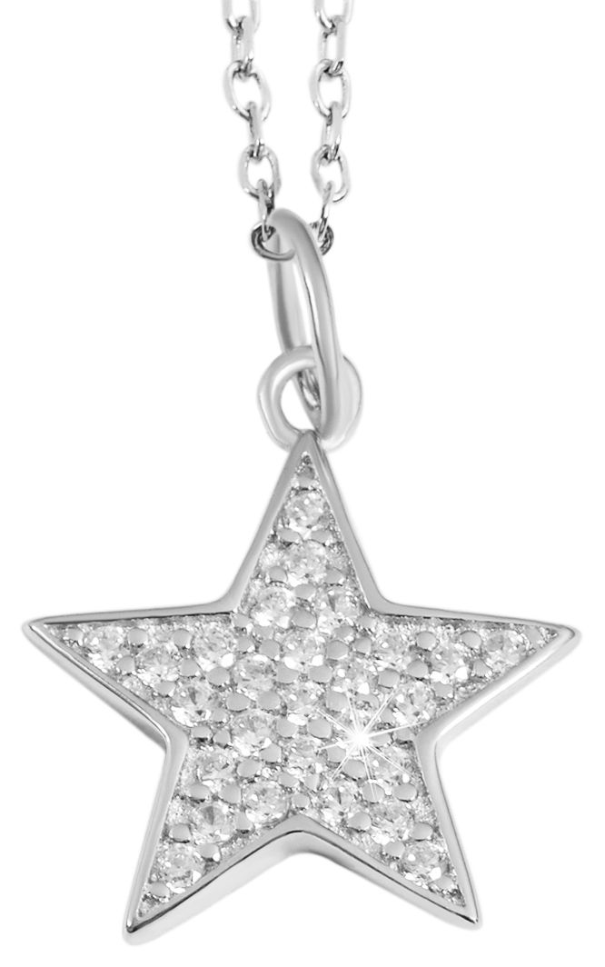 - O pingente em forma de estrela com 27 zircônias engastadas é fabricado em prata de lei 925 e é também revestido a ródio.