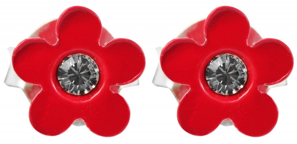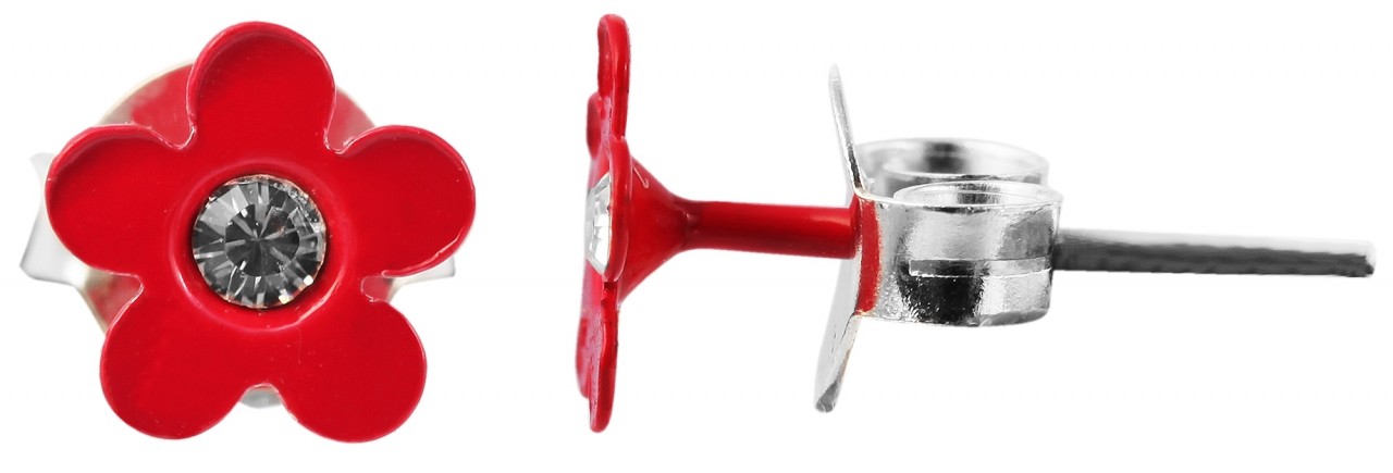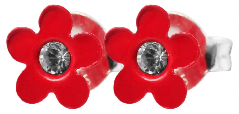 Os lindos brincos infantis em formato de pequenas flores são feitos de prata esterlina 925 e revestidos com tinta epóxi. Uma pedra brilhante simili é habilmente colocada no meio, completando o design. Os brincos podem ser fechados com um parafuso borboleta de prata verdadeira, que evita que caiam e podem ser colocados e retirados com facilidade. As dimensões dos brincos são 5,5 mm de diâmetro e 0,5 mm de espessura. Estes brincos femininos são pequenos, mas lindos e chamam a atenção.