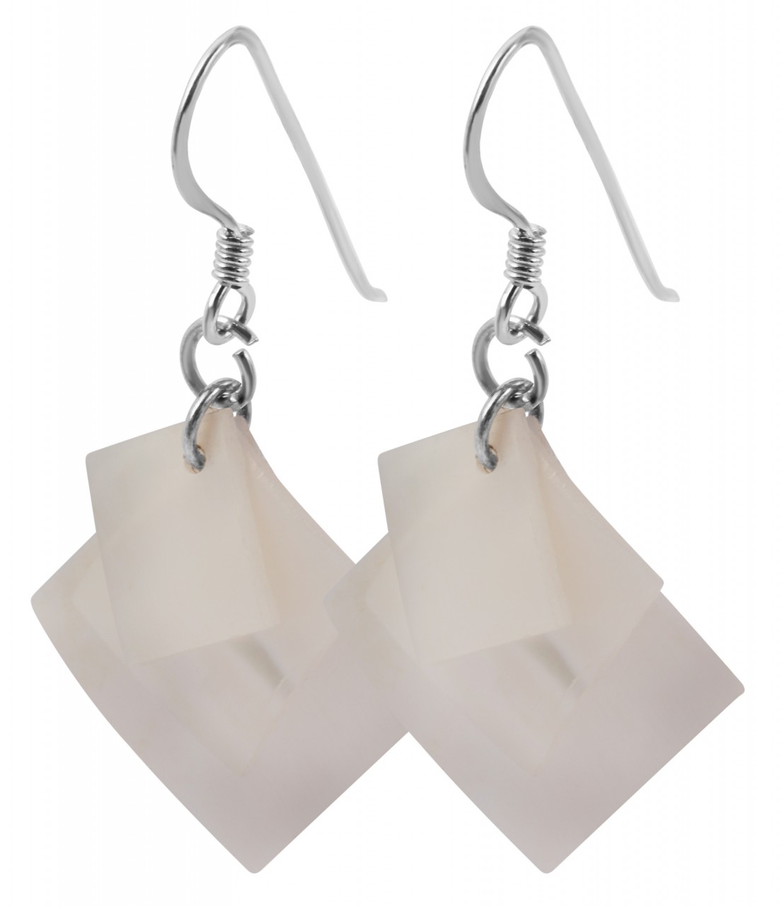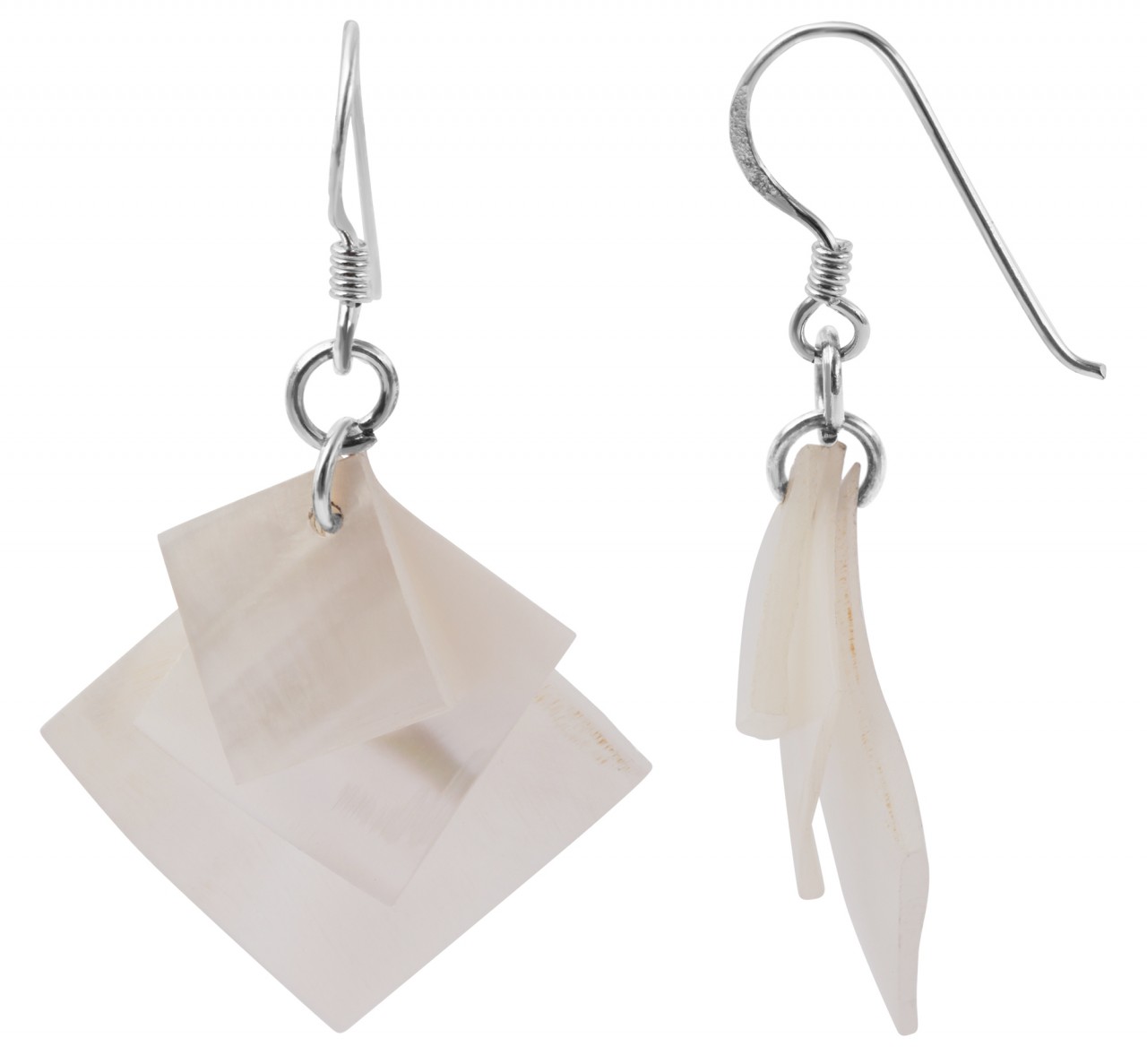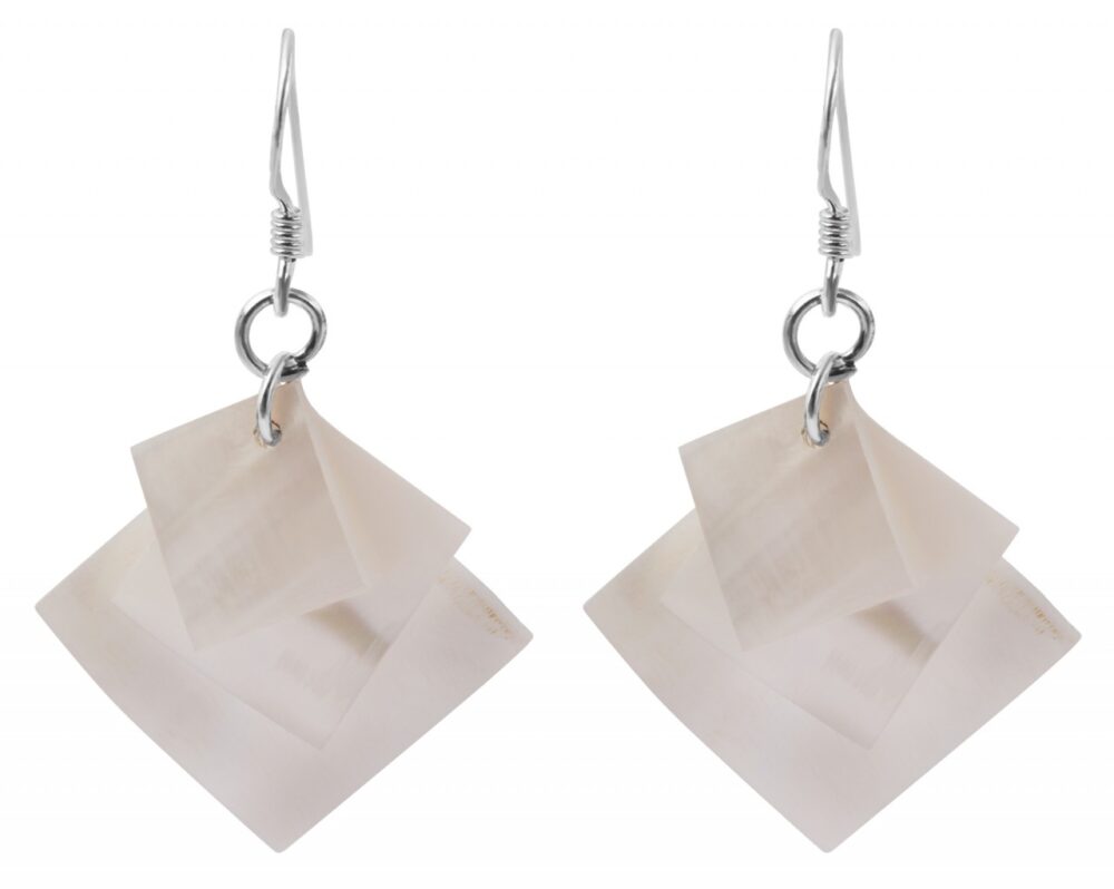 Os brincos com elementos quadrados de madrepérola são feitos em prata de lei 925. Os elementos consistem em três discos de tamanhos diferentes. O fecho é um gancho afro feito de prata verdadeira, que você simplesmente coloca no orifício da orelha para que o peso dos brincos seja distribuído de maneira ideal e eles balancem elegantemente a cada movimento. As dimensões gerais dos brincos são 40 mm de comprimento, 24 mm de largura e 2 mm de espessura. Esta joia brilha em todas as suas facetas cintilantes e é um acessório moderno para todas as mulheres.