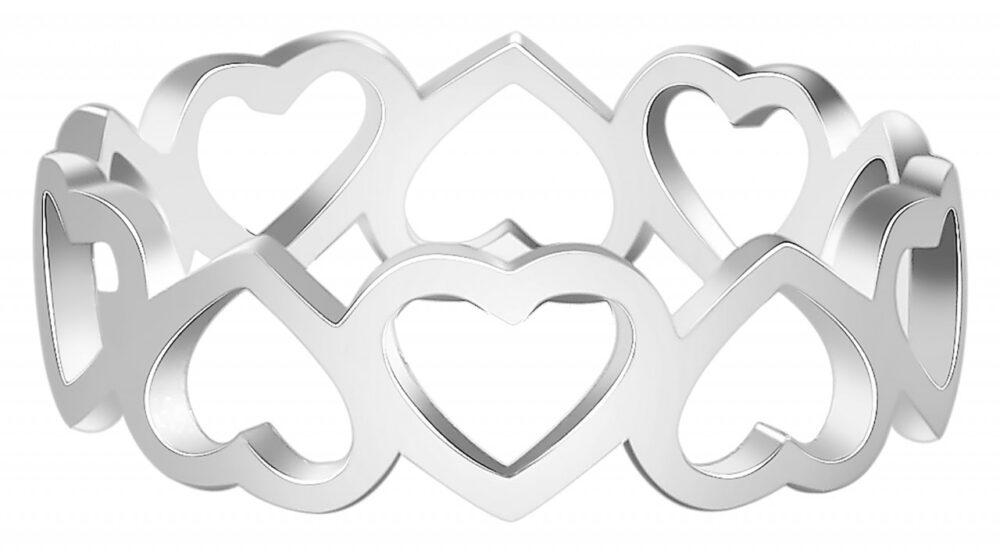 O elegante anel feminino com design romântico de coração é feito de prata esterlina 925 e adicionalmente banhado a ródio. Está disponível nos tamanhos 52 – 62, tem largura de 6 mm e espessura de 1 mm. O banho de ródio de alta qualidade protege a joia contra manchas. Além disso, a textura da superfície é altamente polida, para que o acabamento brilhe. O anel ajusta-se perfeitamente ao dedo sem escorregar e garante o máximo conforto. Os corações entrelaçados formam uma unidade harmoniosa e fazem deste anel feminino da moda um atrativo estiloso com o qual você pode chamar a atenção de todos de maneira inteligente para você e seu novo acessório.