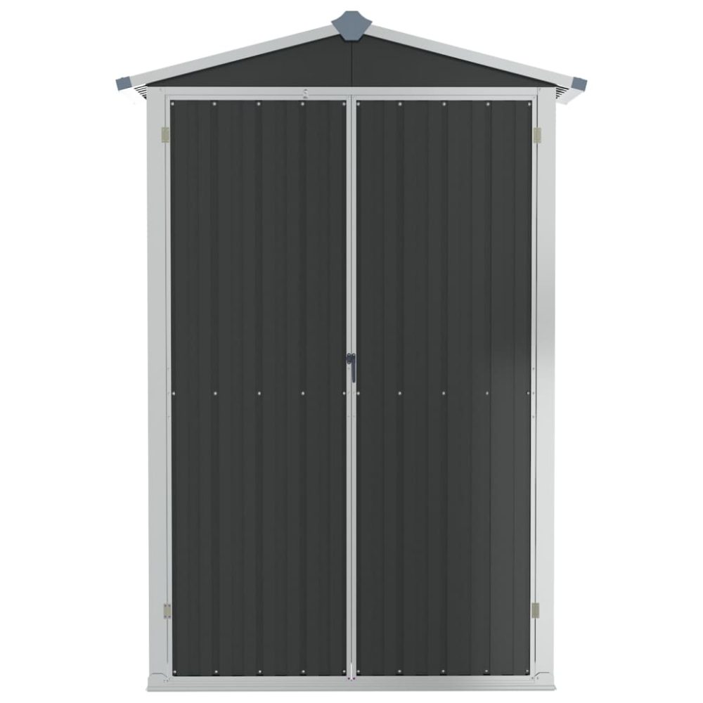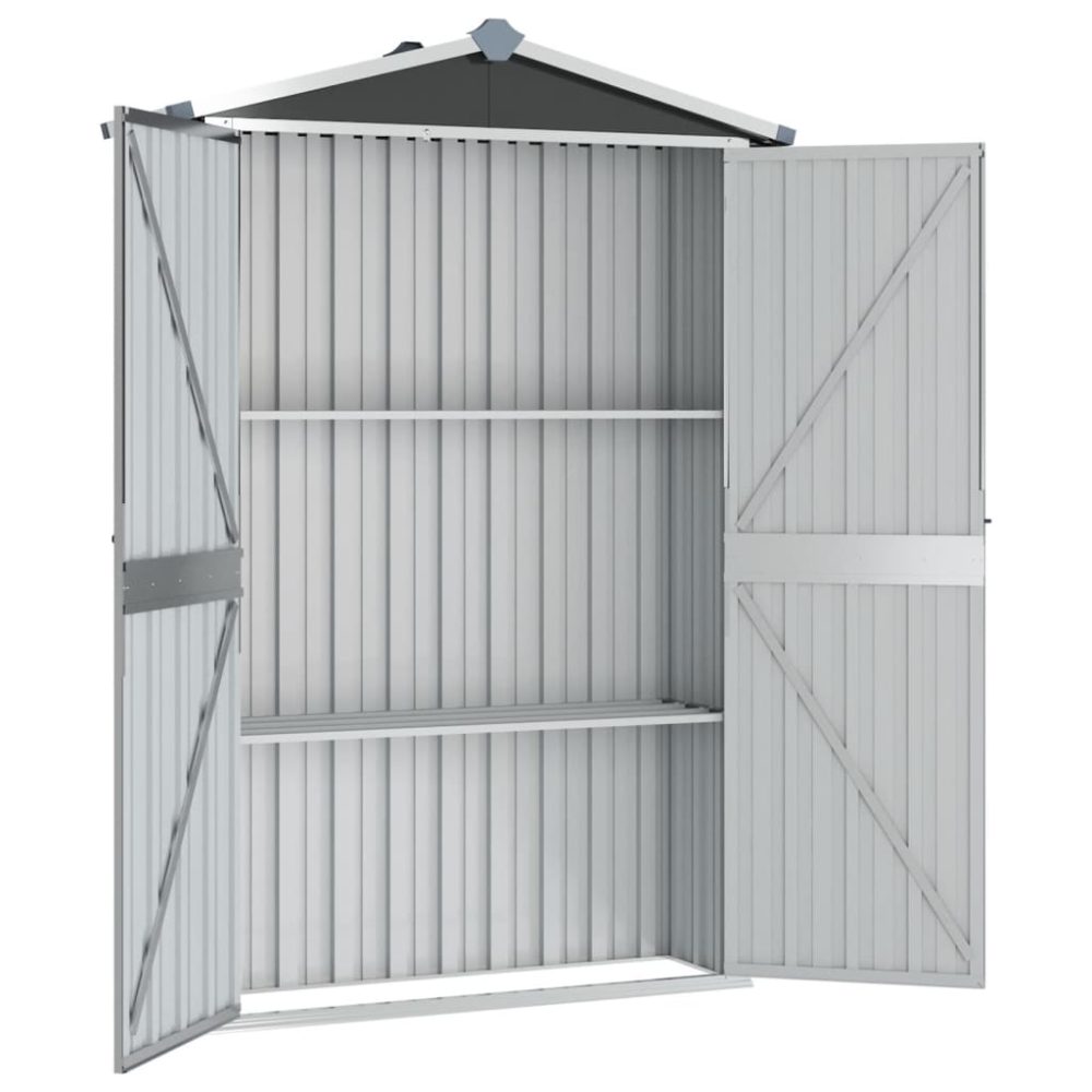 Este abrigo de arrumação está equipado com respiradouros, fornecendo ventilação de forma a reduzir a acumulação de humidade e odores no abrigo. Com prateleiras, oferece um amplo espaço de arrumação para manter os seus artigos essenciais organizados. Este abrigo de arrumação para exterior, feito de aço galvanizado, requer uma manutenção mínima e é muito durável. As portas de abertura dupla na frente facilitam a entrada e a saída. A água da chuva é escoada automaticamente do telhado dado o seu design inclinado.