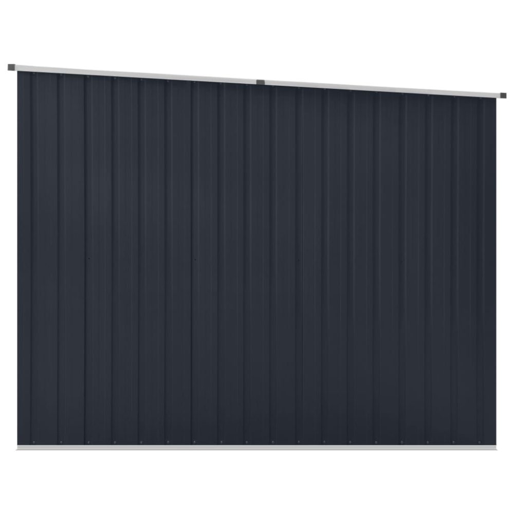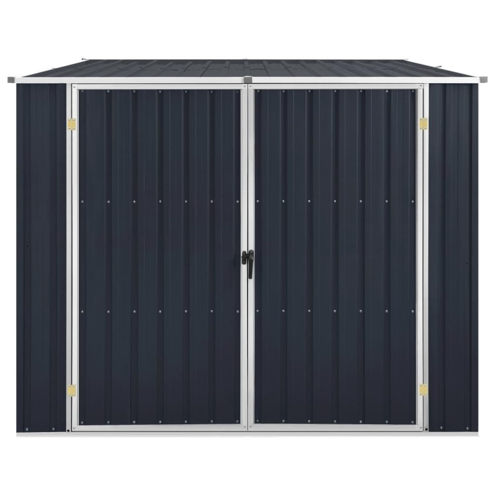 Este abrigo de arrumação para exterior é feito de aço galvanizado, requer uma manutenção mínima e é muito durável. As portas de abertura dupla na frente permitem uma fácil entrada e saída. Graças ao seu design inclinado, a água da chuva é drenada automaticamente do telhado.