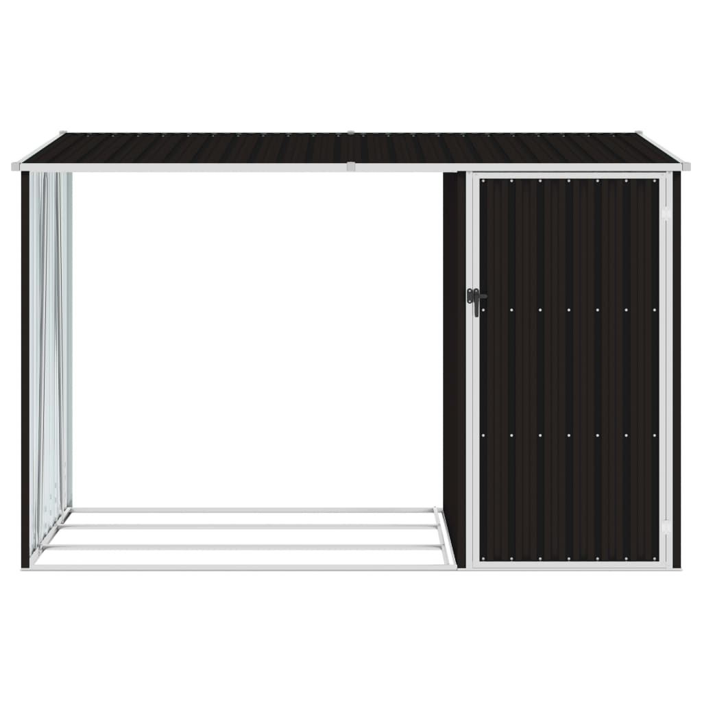 Este abrigo de jardim, com uma zona para arrumação de lenha, oferece um amplo espaço para organizar as suas ferramentas de exterior. Sendo feito de aço galvanizado, este abrigo de arrumação requer uma manutenção mínima e é muito durável. A água da chuva é escoada automaticamente do telhado graças ao seu design inclinado.