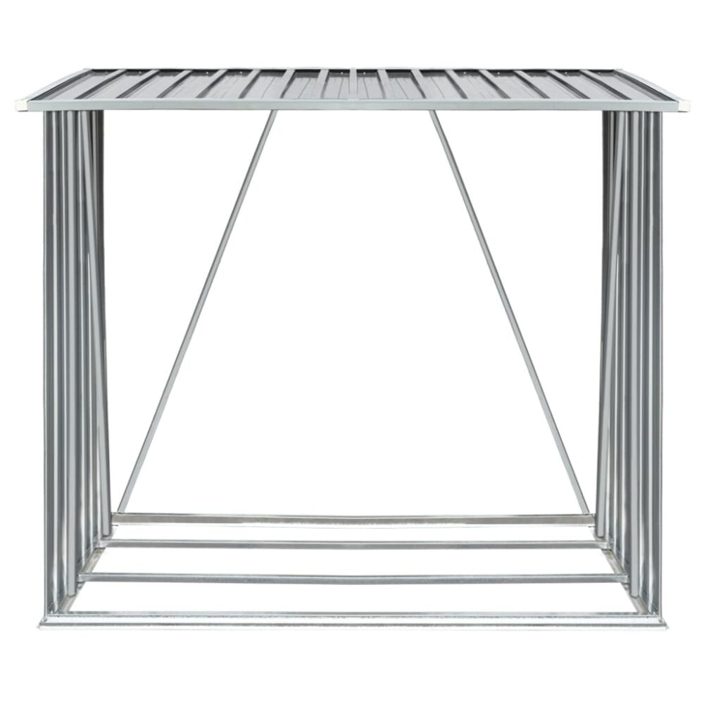 Possui uma construção estável com barras de suporte em aço e tubos extras em ambos os lados. Como é feito de aço galvanizado, o abrigo de arrumação de lenha requer manutenção mínima e é muito durável. Este abrigo de arrumação de troncos inclui uma estrutura de piso em aço para maior estabilidade e ripas de piso elevadas para manter os troncos ventilados e secos. A água da chuva será drenada automaticamente do telhado graças ao seu design inclinado. O nosso abrigo de lenha é fácil de montar.