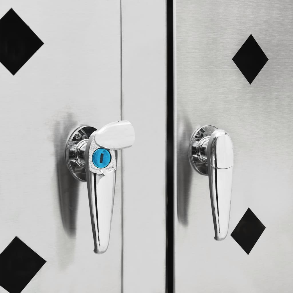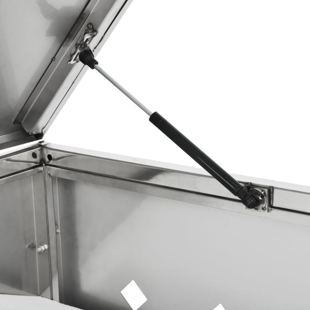 Feita de aço inoxidável, a cobertura para caixote de lixo é extremamente resistente às intempéries e durável. Os orifícios de ventilação úteis permitem a circulação do ar e evitam maus odores no caixote do lixo, enquanto o sistema de bloqueio garante um armazenamento seguro do lixo. A porta prática permite-lhe colocar e retirar o caixote do lixo facilmente.