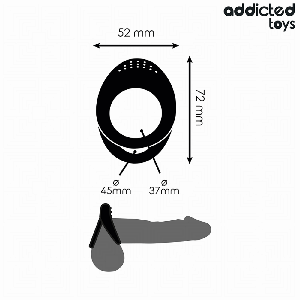 - Anel grande com diâmetro de 45 mm, projetado para envolver tanto o pênis quanto os testículos, proporcionando maior controle.