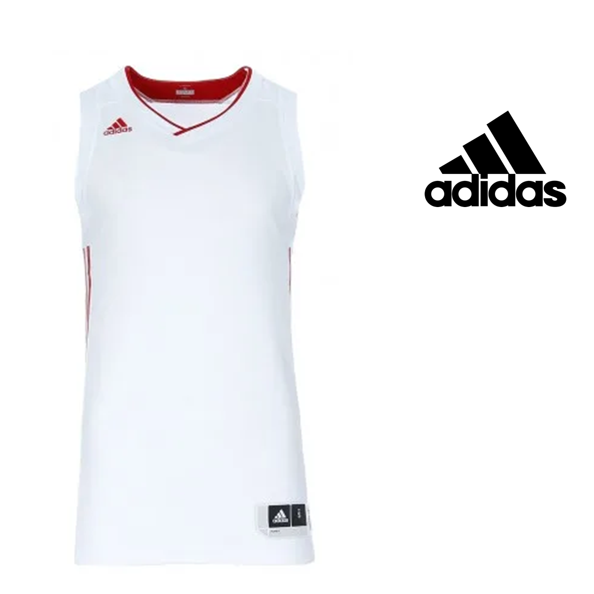 Adidas marca camisola se destaca com seu corte sem mangas e um decote V.