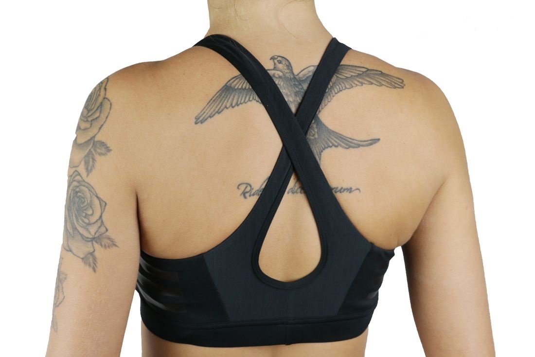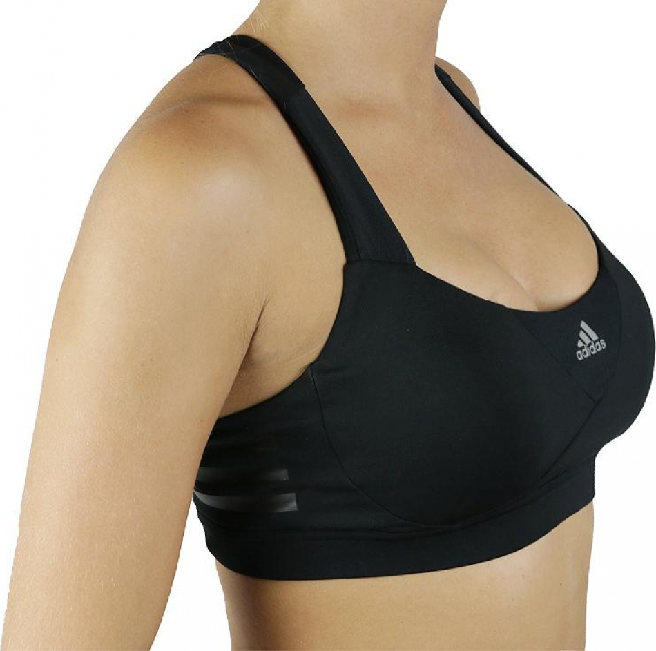 - Alças cruzadas flexíveis, costura suave e Três Listras em silk screen para conforto