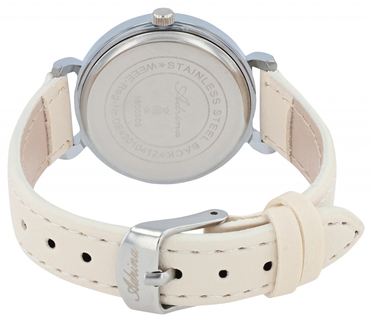 Relógio feminino da marca Adrina com bracelete em pele sintética.