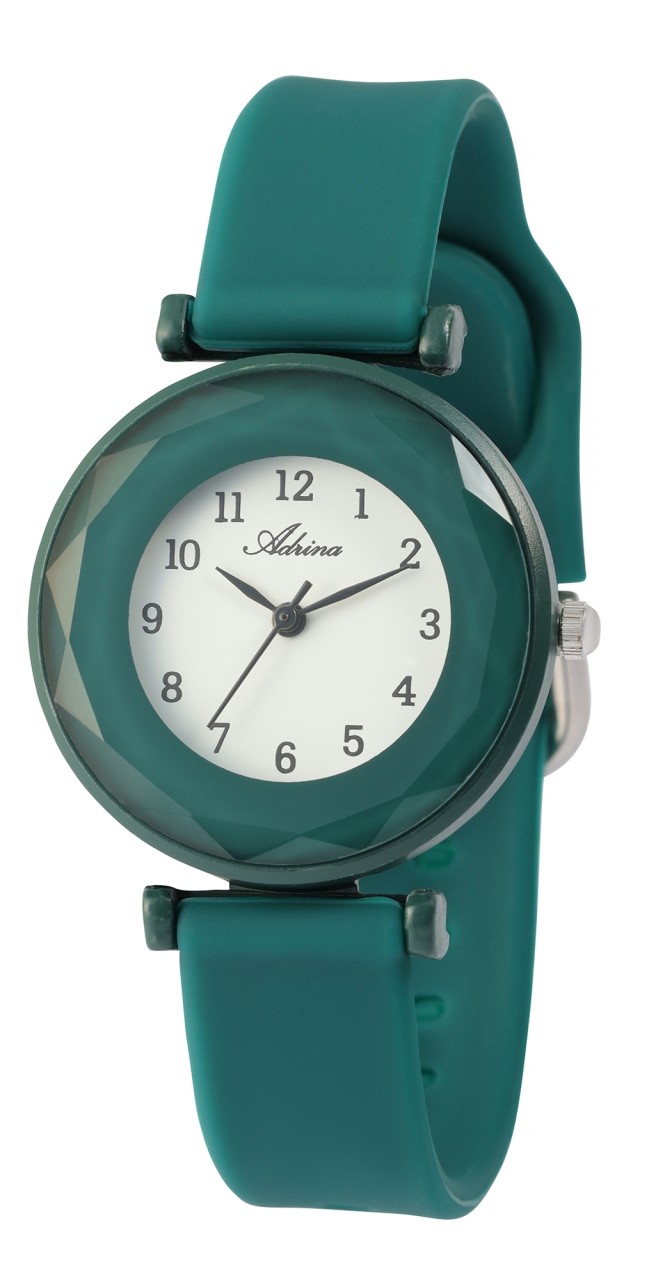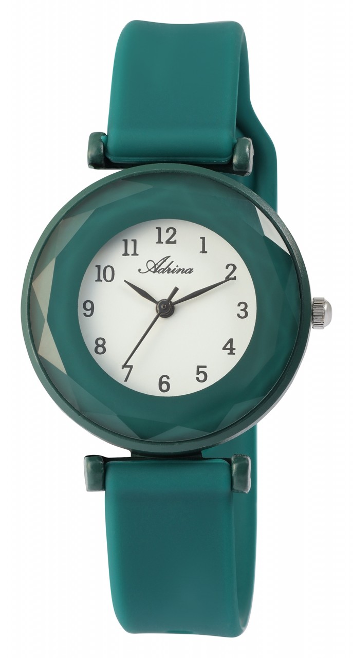 Este relógio feminino da marca Adrina é a combinação perfeita de estilo e funcionalidade, combinando design moderno com confiabilidade funcional. O relógio está disponível em várias cores da moda. Um destaque especial é o atraente anel do mostrador, cuja cor combina perfeitamente com a imagem geral. A pulseira é confecionada em silicone macio e flexível, o que garante alto nível de conforto e cabe confortavelmente no pulso. A robusta caixa de metal não só confere ao relógio uma aparência moderna, mas também uma durabilidade impressionante. O vidro mineral facetado é cortado em diferentes ângulos, criando um design esteticamente agradável e acrescentando um toque único. O relógio possui display analógico com três ponteiros e algarismos arábicos de fácil leitura e índice de linhas, o que garante uma leitura clara e fácil.