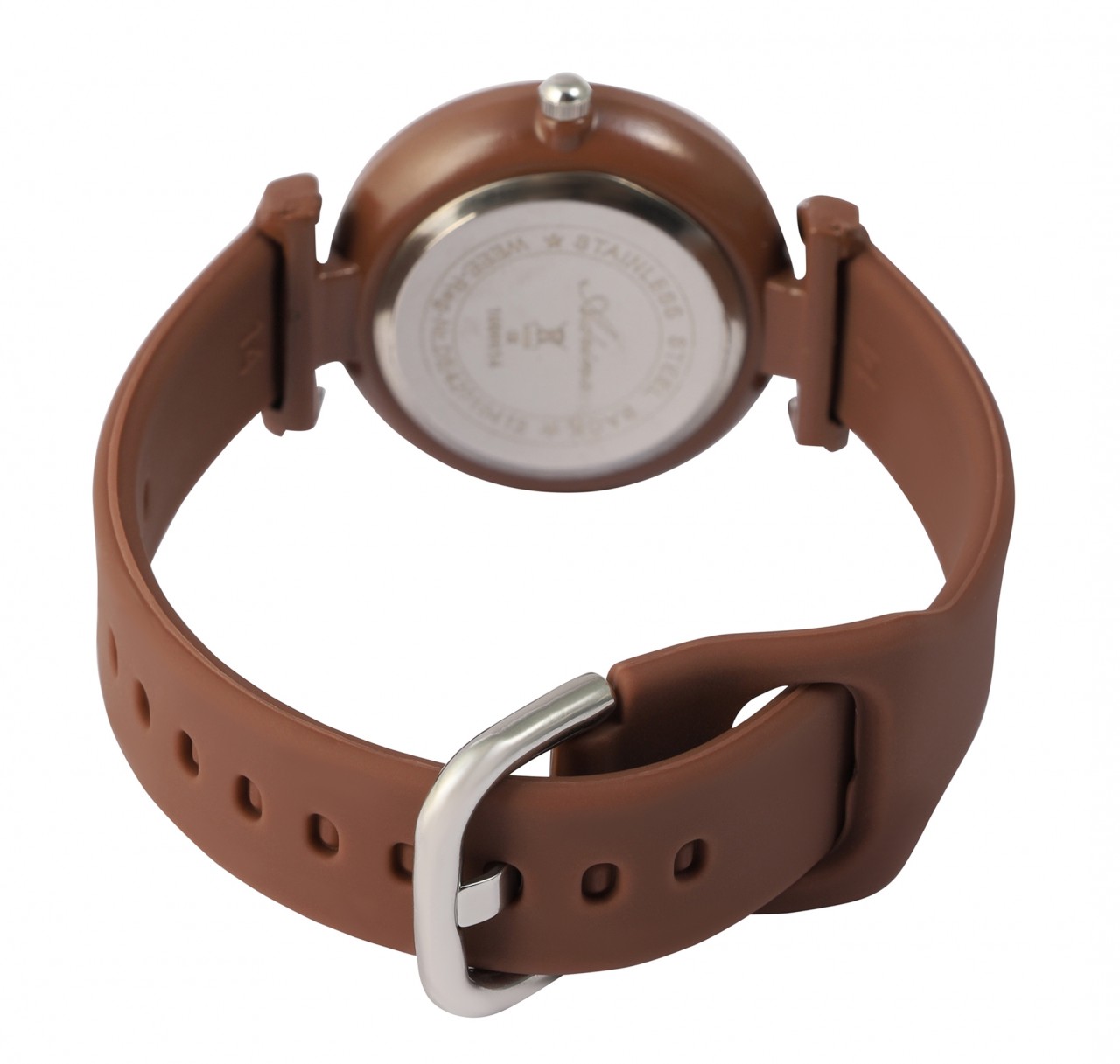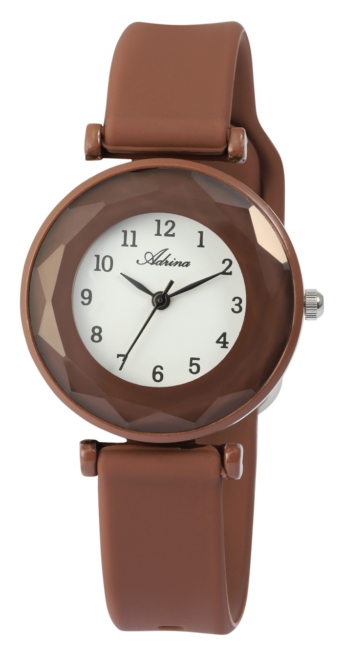 Este relógio feminino da marca Adrina é a combinação perfeita de estilo e funcionalidade, combinando design moderno com confiabilidade funcional. O relógio está disponível em várias cores da moda. Um destaque especial é o atraente anel do mostrador, cuja cor combina perfeitamente com a imagem geral. A pulseira é confecionada em silicone macio e flexível, o que garante alto nível de conforto e cabe confortavelmente no pulso. A robusta caixa de metal não só confere ao relógio uma aparência moderna, mas também uma durabilidade impressionante. O vidro mineral facetado é cortado em diferentes ângulos, criando um design esteticamente agradável e acrescentando um toque único. O relógio possui display analógico com três ponteiros e algarismos arábicos de fácil leitura e índice de linhas, o que garante uma leitura clara e fácil.