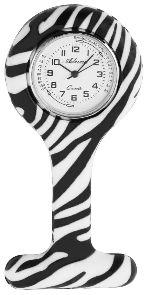 Die analoge 3-Zeiger Krankenschwesteruhr der Marke Adrina verfügt über ein hochwertiges Quarzuhrwerk und ist in verschiedenen Farben und Mustern erhältlich. Das Gehäuse der Uhr ist mit Silikon ummantelt und ist dadurch besonders pflegeleicht und hygienisch. Zum Befestigen der Uhr dient eine dünne Sicherheitsnadel mit einem sicheren Drehverschluss. Die Gesamtlänge der Uhr beträgt 8,5 cm, die Breite 4 cm und die Stärke 1 cm. Der Gehäuseboden ist aus Edelstahl gefertigt, auf der Rückseite des Gehäuses gibt es eine Aussparung im Silikon, sodass die darin enthaltene Batterie einfach ausgetauscht werden kann. Zudem lässt sich der Gehäuseboden individuell mit unterschiedlichsten Gravuren versehen, sodass diese Uhr zu einem ganz personalisierten Accessoire gestaltet werden kann. Somit wird dieses Uhrenmodell zu einem tollen Geschenk für jeden, der seinen Job liebt oder für einen leidenschaftl…