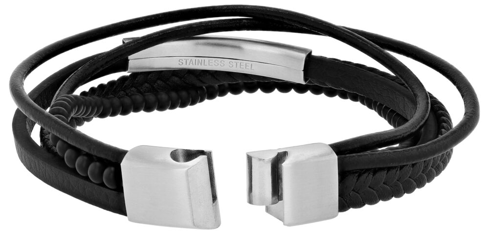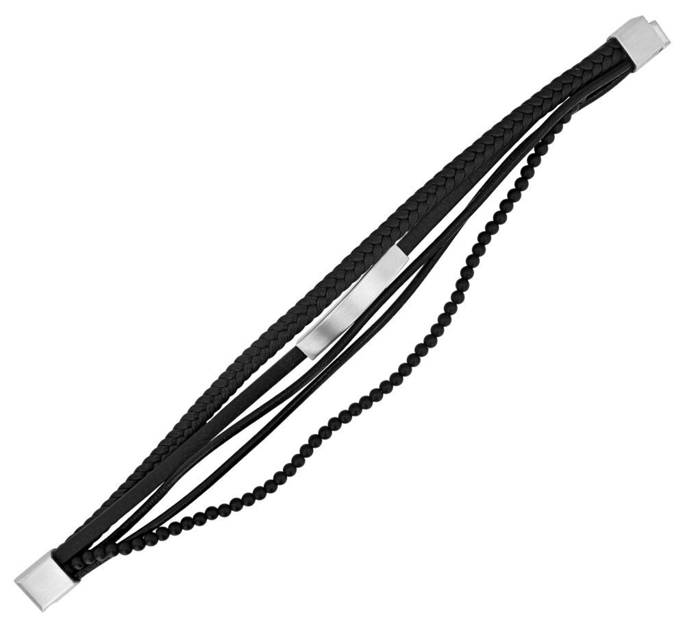 Marca:Akzent Género:Unisex Estilo:Moda Cor 1:Preto Cor 2:Prateado Peso do artigo em g:24 Material 2:Aço inoxidável Peso de envio do artigo em g:38 Tipo:Pulseira Cor 3:Preto Fecho:Aço inoxidável Fecho magnético Material 1:Couro de imitação Material 3:Ônix Altura em cm:0.85 Largura em cm:1.35 Nome do modelo:Aegir Extensão em cm:1 Gravação:Verdadeiro