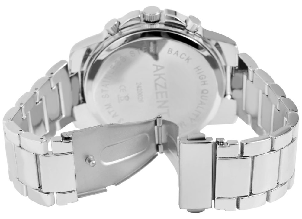 O relógio de pulso analógico-digital para homem da marca Praktik possui um movimento de quartzo de três ponteiros de alta qualidade e um movimento digital de alta qualidade. A pulseira em aço inoxidável tem 24 mm de largura na alça e pode ser aberta e fechada com um fecho dobrável em aço inoxidável. Devido aos elementos removíveis, a pulseira pode ser ajustada a qualquer circunferência do pulso. O comprimento total do relógio é de 22 cm. A caixa de metal com vidro mineral tem um diâmetro de 48 mm e uma altura de 15 mm. O fundo da caixa é feito de aço inoxidável e o relógio tem resistência à água de 3 bar. A hora…