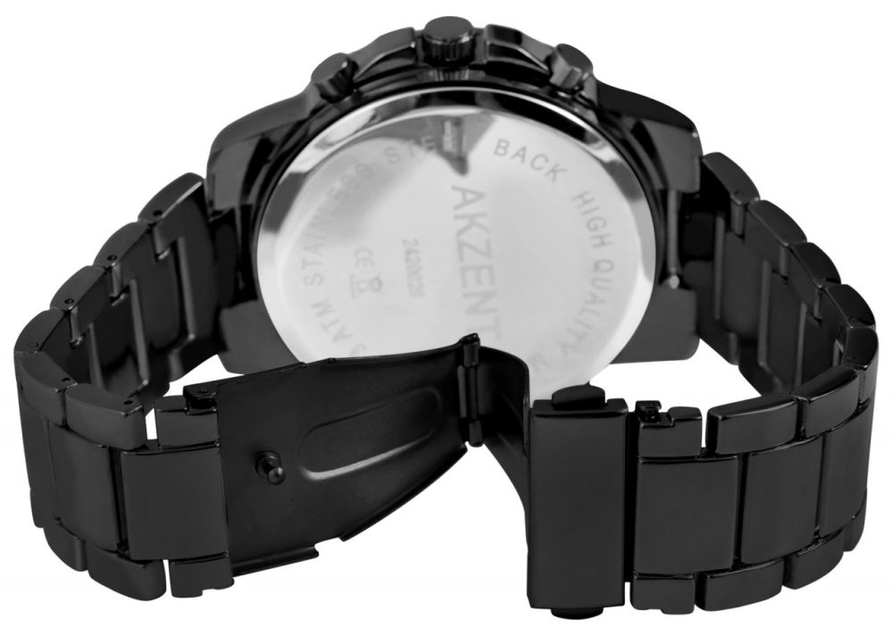 O relógio de pulso analógico-digital para homem da marca Praktik possui um movimento de quartzo de três ponteiros de alta qualidade e um movimento digital de alta qualidade. A pulseira em aço inoxidável tem 24 mm de largura na alça e pode ser aberta e fechada com um fecho dobrável em aço inoxidável. Devido aos elementos removíveis, a pulseira pode ser ajustada a qualquer circunferência do pulso. O comprimento total do relógio é de 22 cm. A caixa de metal com vidro mineral tem um diâmetro de 48 mm e uma altura de 15 mm. O fundo da caixa é feito de aço inoxidável e o relógio tem resistência à água de 3 bar. A hora…