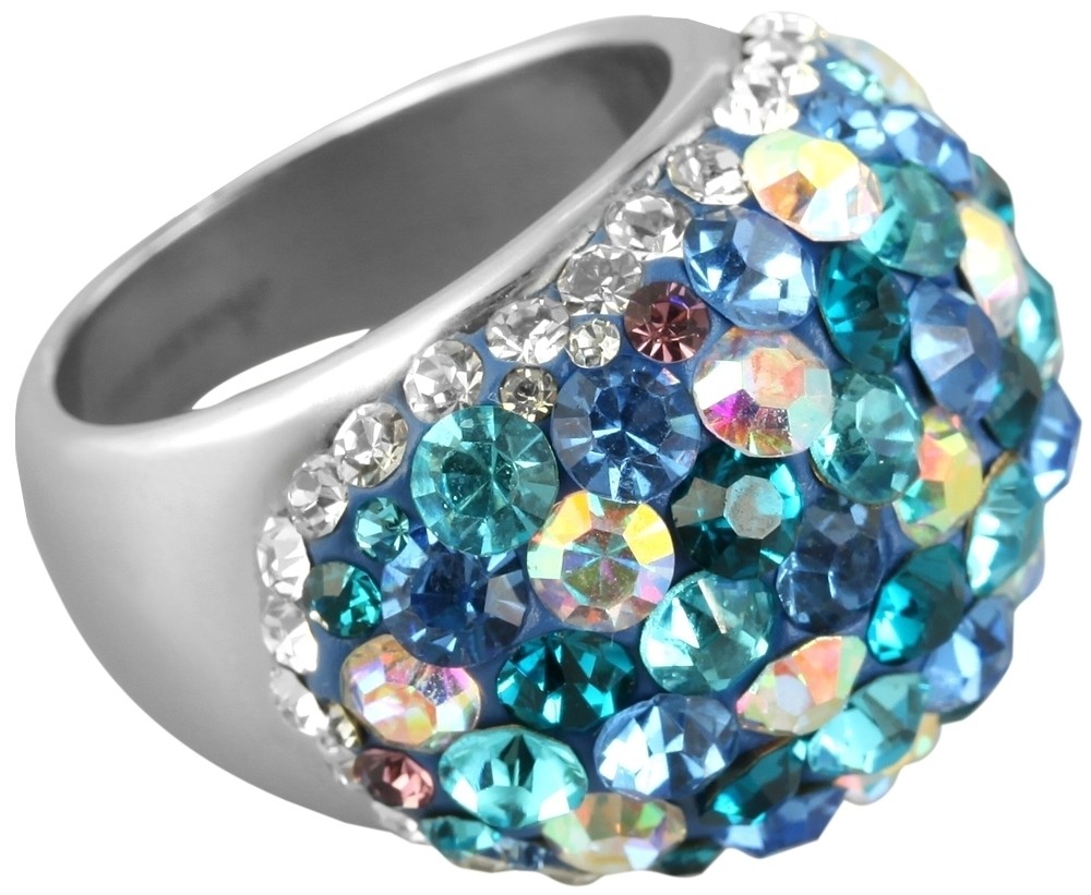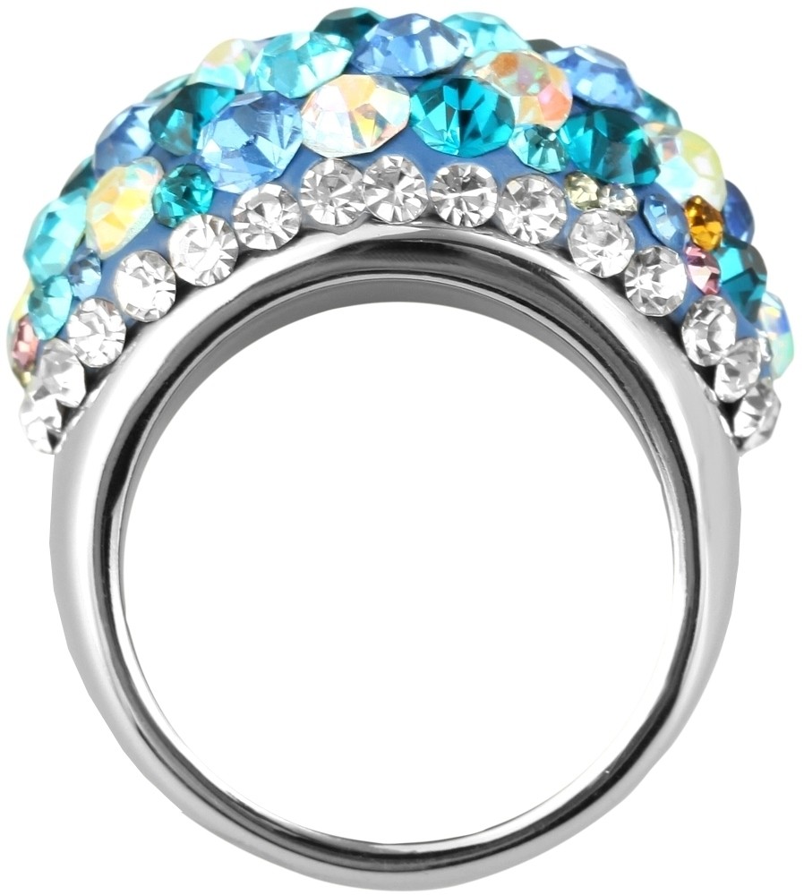 Anel feminino Akzent de aço inoxidável com pedras azuis.