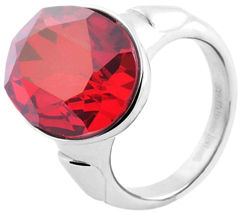 Anel de senhora em aço inoxidável com pedra vermelha.