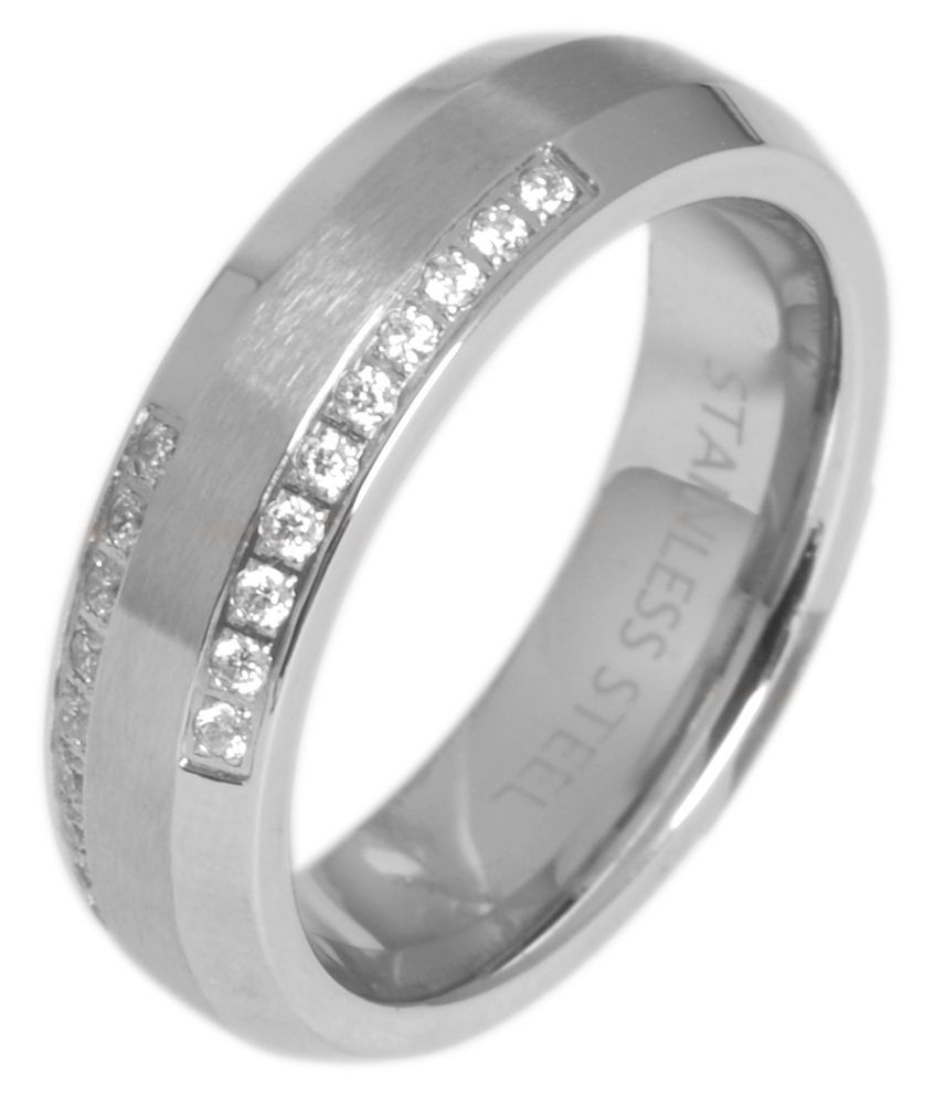 O anel de aço inoxidável prateado da marca Praktik é um anel de parceiro feminino que está disponível nos tamanhos 52 - 62. Possui largura de 6 mm e espessura de material de 2,5 mm. A aparência do anel é fosca no meio, as bordas externas na borda do anel são altamente polidas e decoradas com duas fileiras de pedras semelhantes.As pedras brilhantes estão dispostas uma em frente da outra e dão ao anel uma aparência elegante. O anel pode ser combinado de qualquer forma e é confortável de usar. Por dentro pode ser gravado e projetado individualmente. Com este produto você recebe um anel de parceiro especial que é um símbolo de coesão eterna.