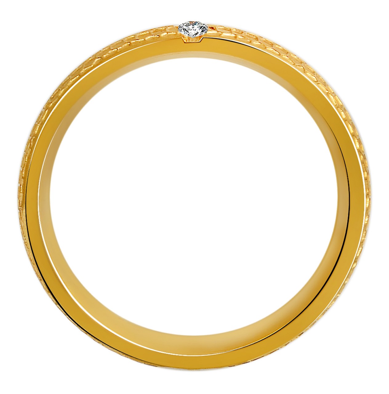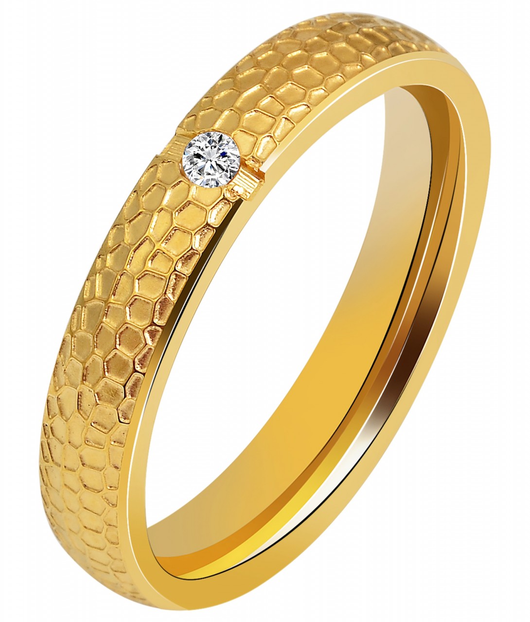 O anel de aço inoxidável dourado da marca Praktik é um anel de parceira feminina que está disponível nos tamanhos 52-62. Tem largura de 4 mm e espessura de material de 2 mm. O visual tem acabamento superficial fosco e estruturado, o que confere ao anel um visual único. Também é decorado com uma pedra similite no centro e pode ser decorado com gravuras pessoais no interior. Com este produto você recebe um anel de parceiro especial que é um símbolo de coesão eterna.