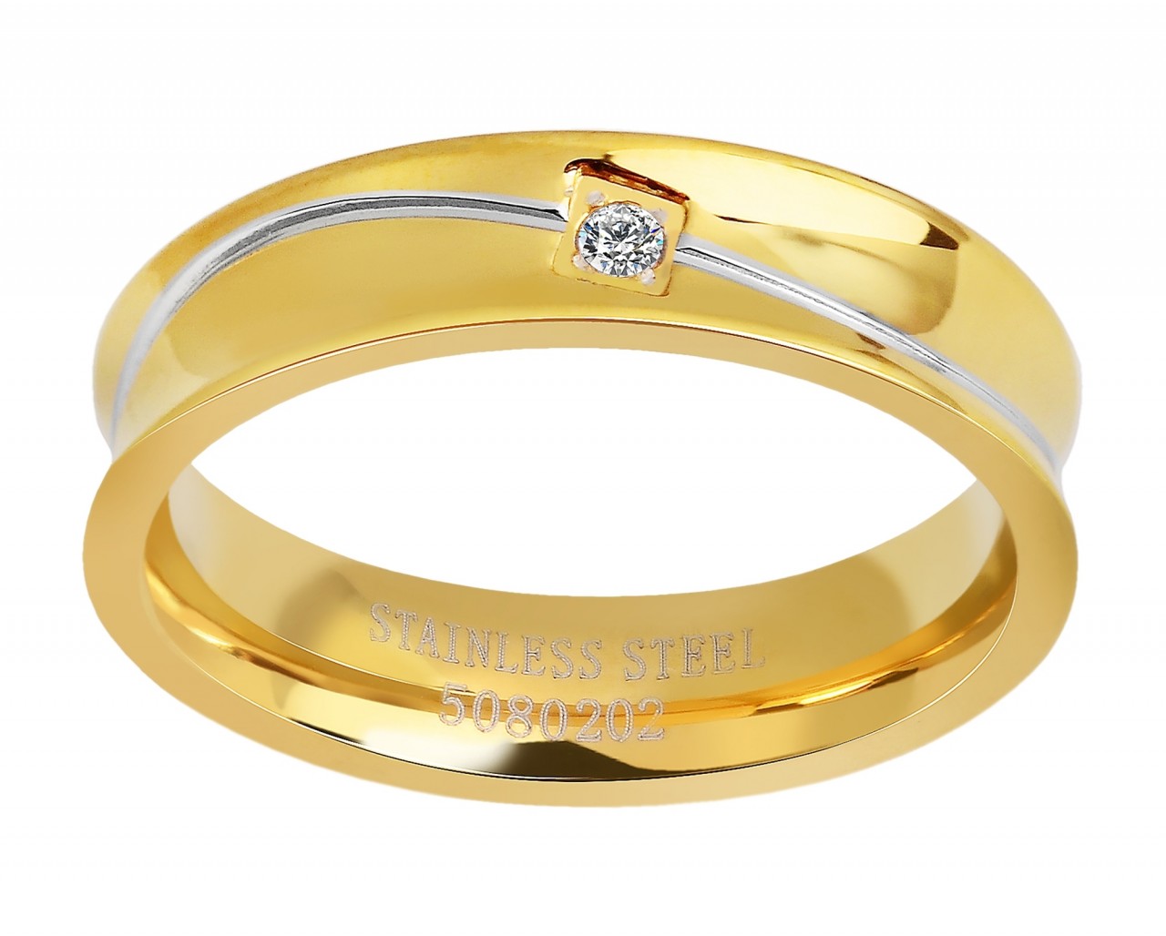 O anel de aço inoxidável da marca Praktik é um anel de parceiro feminino que está disponível nos tamanhos 52-62. Tem largura de 5 mm e espessura de material de 2 mm. Toda a superfície do anel é altamente polida e tem uma aparência particularmente elegante. O anel curvado para dentro é dourado e tem uma fresagem curva prateada. Além disso, pode ser gravado por dentro e por fora, tornando esta joia um acessório muito pessoal.