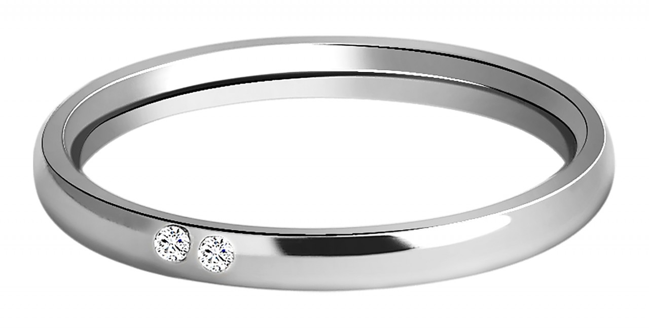 O anel feminino prateado da marca Praktik é feito de aço inoxidável e está disponível em diversos tamanhos. A superfície do anel é altamente polida e decorada com duas pedras simil discretamente incorporadas. O anel é curvado e tem espessura de material de 2 mm e largura de 2 mm.