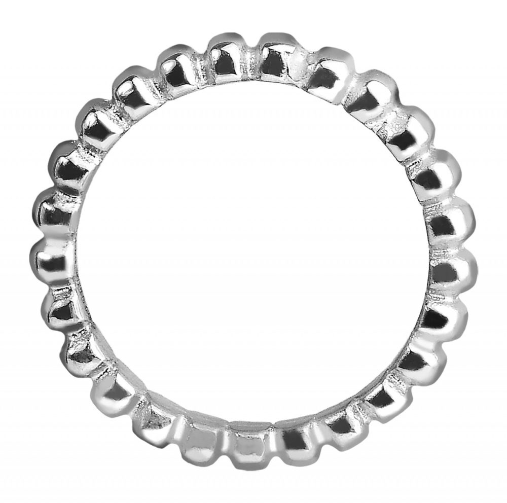 O anel feminino prateado da marca Praktik é feito de aço inoxidável e está disponível em diversos tamanhos. A faixa do anel é altamente polida e formada por elementos circulares. Eles estão conectados e enfatizam habilmente a elegância delicada do anel. As dimensões do anel resultam de uma espessura de material de 2 mm e largura de 3 mm.