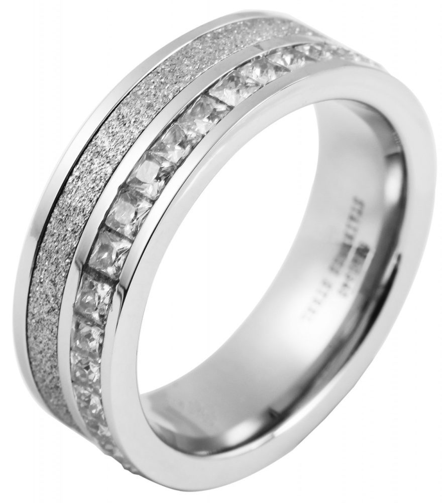 Anel feminino prateado feito em aço inoxidável no tamanho 62.
