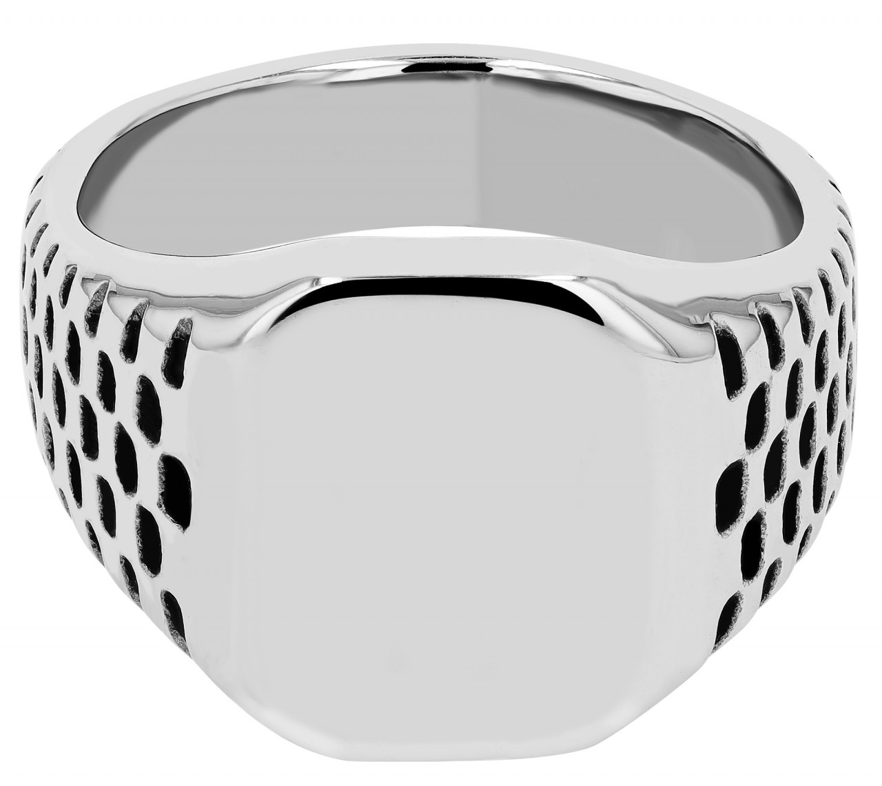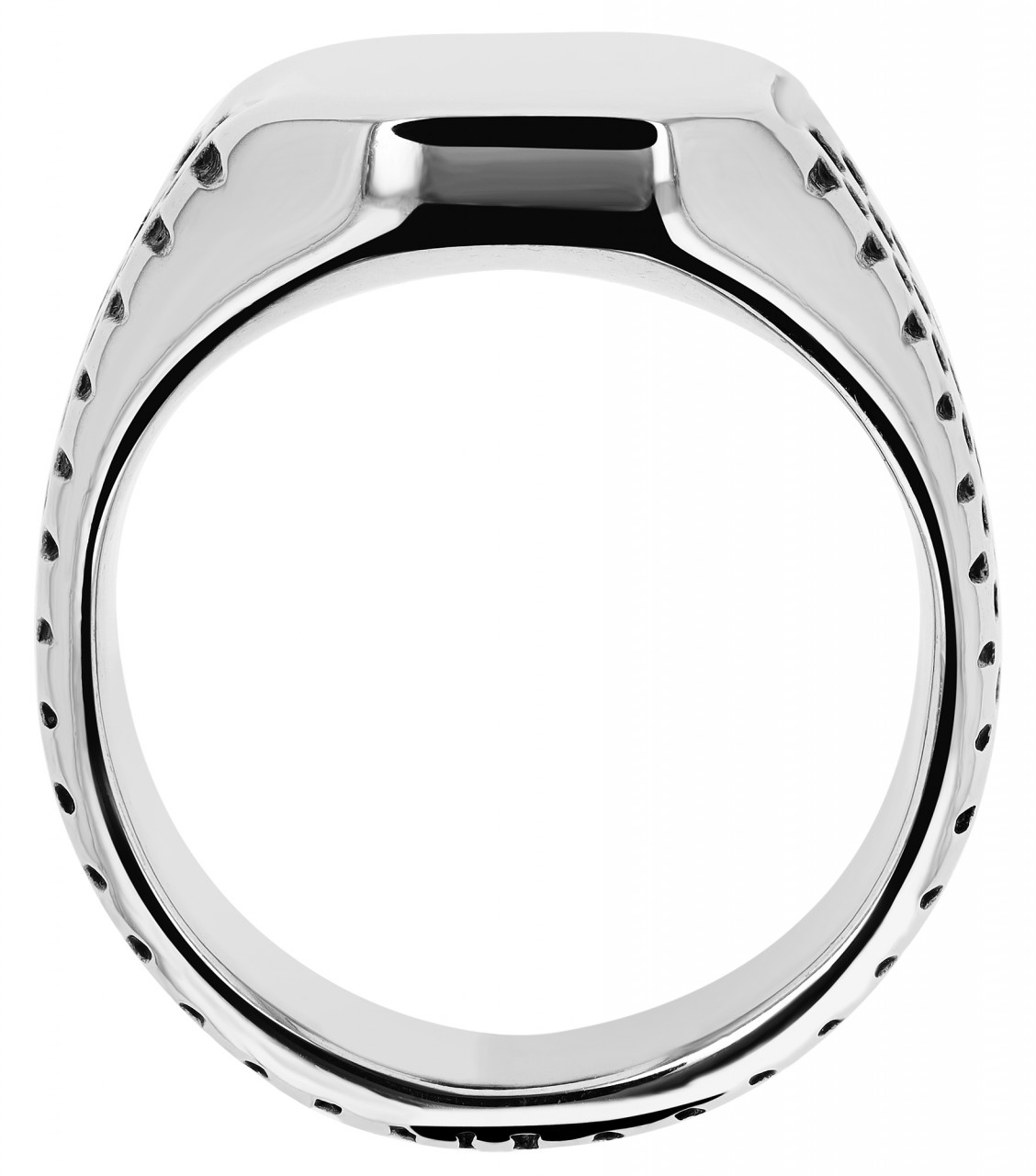 Este anel de sinete especial é feito de aço inoxidável durável e apresenta um acabamento altamente polido e um design escurecido. O uso de material de alta qualidade não só confere ao anel uma aparência atraente, mas também dureza e resistência adicionais para suportar as demandas diárias. O anel masculino Akzent está disponível em várias opções de tamanhos, de 64 a 70, para garantir um ajuste perfeito para cada usuário. O generoso comprimento da cabeça do anel de 15 mm e a largura da cabeça do anel de 14 mm conferem ao anel de sinete uma presença marcante e fazem dele um acessório impressionante que oferece a opção de gravação.