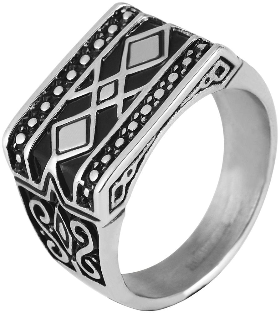 O anel de aço inoxidável prateado com detalhes em preto chama a atenção. O acabamento banhado a íon confere a este anel masculino uma aparência sofisticada, enquanto os enfeites dão ao anel um toque distinto. Medindo 16 mm de largura e 3 mm de altura, o anel é sutil e expressivo. Este fascinante anel combina elegância masculina com design moderno e é o acessório perfeito para realçar o seu estilo pessoal. Este anel de aço inoxidável não é apenas uma declaração de moda, mas também um símbolo de qualidade e longevidade. O aço inoxidável é conhecido pela sua robustez e resistência à corrosão, o que significa que o usuário irá desfrutar deste anel de aço inoxidável por muito tempo. É o companheiro perfeito para o homem exigente de hoje.