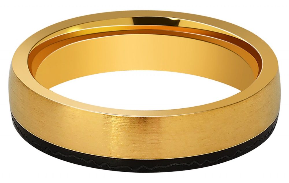 Anel masculino dourado com detalhes em preto feito em aço inoxidável.