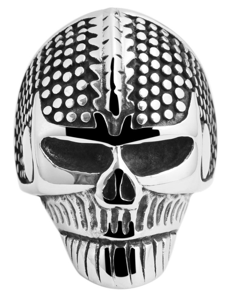 Descubra o nosso fascinante anel masculino com caveira! Esta joia exclusiva foi especialmente projetada para os amantes de joias mais exigentes que procuram uma peça muito especial. Feito de aço inoxidável de alta qualidade, este anel é de qualidade e robustez impressionantes. O revestimento iônico especial confere ao anel masculino seu incomparável visual prateado/preto, o que lhe confere um toque de misticismo e frescor. Este anel de aço inoxidável chama imediatamente a atenção e atrai olhares de admiração. O anel de caveira está disponível em diferentes tamanhos para garantir que se ajuste perfeitamente à mão do usuário. Com uma largura impressionante de 35 mm e uma espessura impressionante de 6 mm, este anel é um acessório que chama a atenção. Seu tamanho imponente e sua força simbolizam força e assertividade.