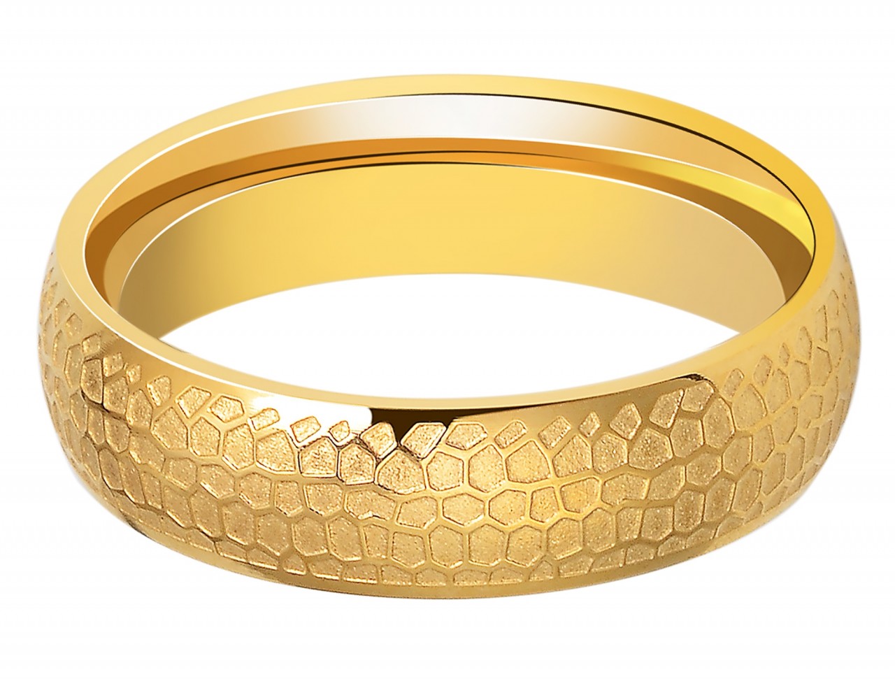 O anel de aço inoxidável dourado da marca Praktik é um anel de parceiro masculino que está disponível nos tamanhos 58-72. Tem largura de 6 mm e espessura de material de 2 mm. O visual tem acabamento superficial fosco e estruturado, o que confere ao anel um visual único. Também pode ser decorado com gravuras pessoais no interior. Com este produto você recebe um anel de parceiro especial que é um símbolo de coesão eterna.