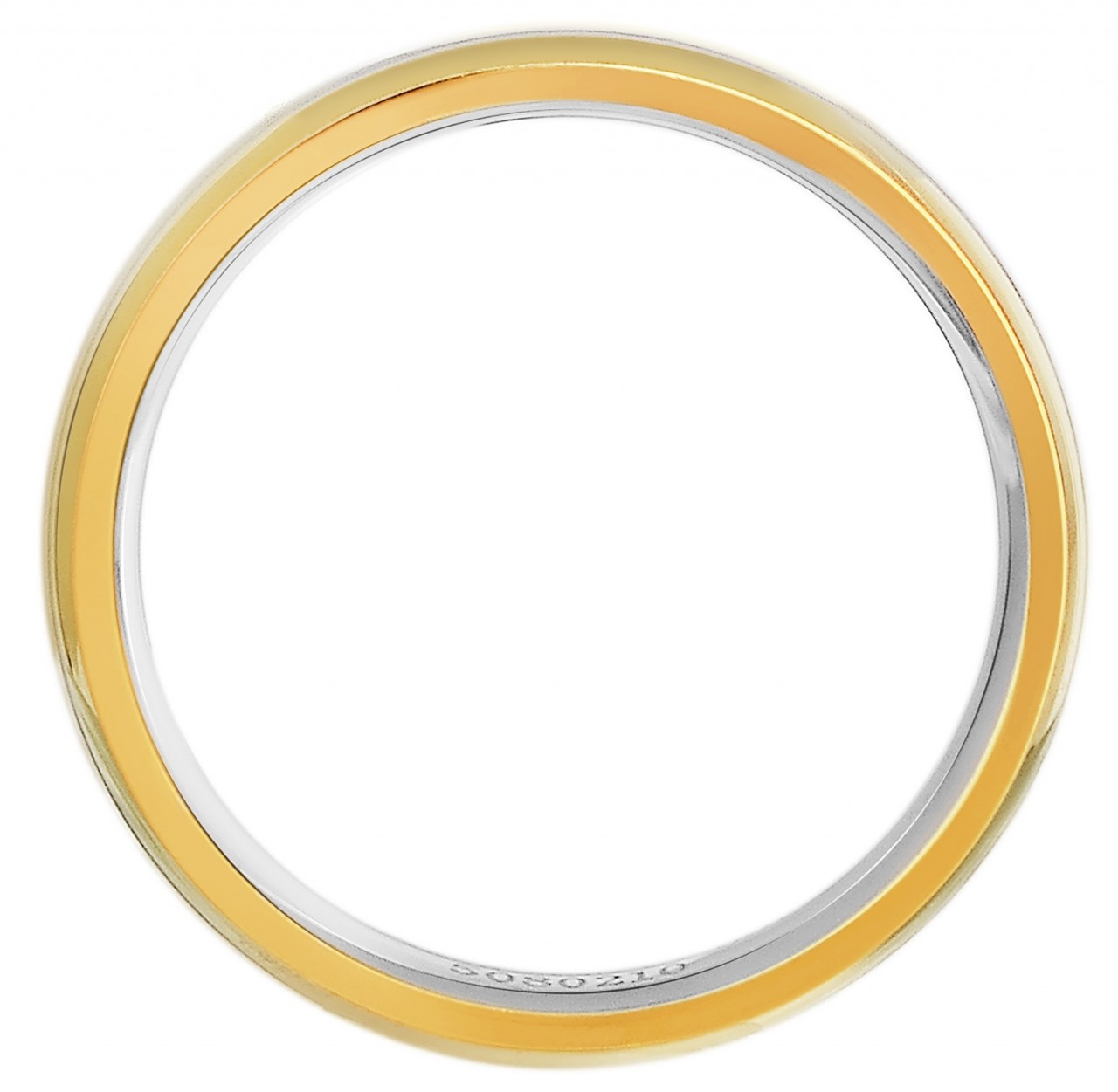 O anel de aço inoxidável da marca Praktik é um anel parceiro masculino que está disponível nos tamanhos 58 – 72. Tem largura de 6 mm e espessura de material de 2 mm. O anel tem um visual bicolor emocionante. A superfície prateada é mate e a superfície dourada com 2 mm de largura é polida. O anel pode ser gravado no interior, tornando esta joia uma companheira muito pessoal.