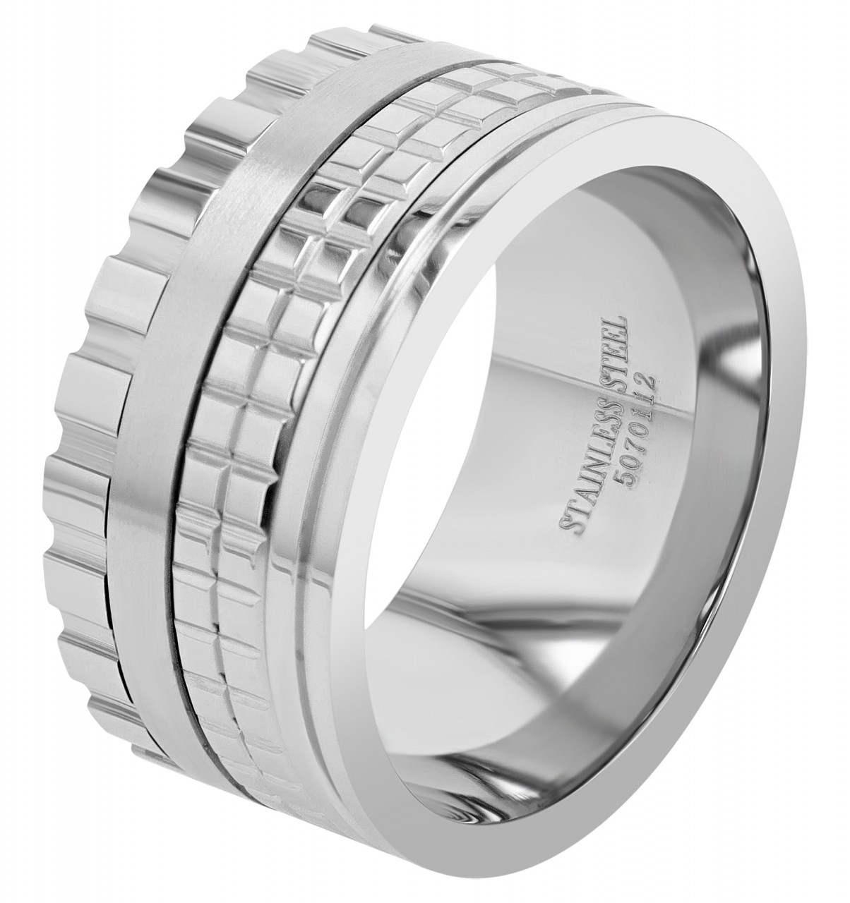 Nosso anel masculino feito de aço inoxidável de alta qualidade combina um design impressionante com qualidade de primeira classe. Disponível nos tamanhos de anel 62 a 72, é perfeitamente ajustável para dar a cada homem a oportunidade de usar esta joia. A aparência externa do anel é uma mistura harmoniosa de elementos foscos e polidos, que conferem ao anel um visual moderno. A largura de 12 mm e a espessura de 2,5 mm conferem ao anel masculino uma presença marcante sem parecer sobrecarregado. O verdadeiro destaque deste anel é o centro giratório da faixa, que lhe confere um toque lúdico e permite ao usuário interagir com a joia. Fabricado em aço inoxidável, o anel masculino caracteriza-se pela sua robustez e resistência à corrosão.