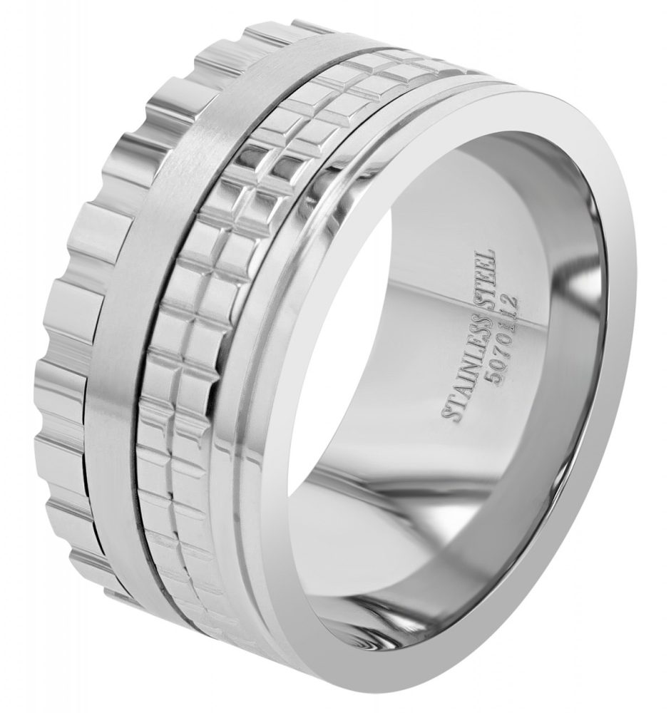 Nosso anel masculino feito de aço inoxidável de alta qualidade combina um design impressionante com qualidade de primeira classe. Disponível nos tamanhos de anel 62 a 72, é perfeitamente ajustável para dar a cada homem a oportunidade de usar esta joia. A aparência externa do anel é uma mistura harmoniosa de elementos foscos e polidos, que conferem ao anel um visual moderno. A largura de 12 mm e a espessura de 2,5 mm conferem ao anel masculino uma presença marcante sem parecer sobrecarregado. O verdadeiro destaque deste anel é o centro giratório da faixa, que lhe confere um toque lúdico e permite ao usuário interagir com a joia. Fabricado em aço inoxidável, o anel masculino caracteriza-se pela sua robustez e resistência à corrosão.
