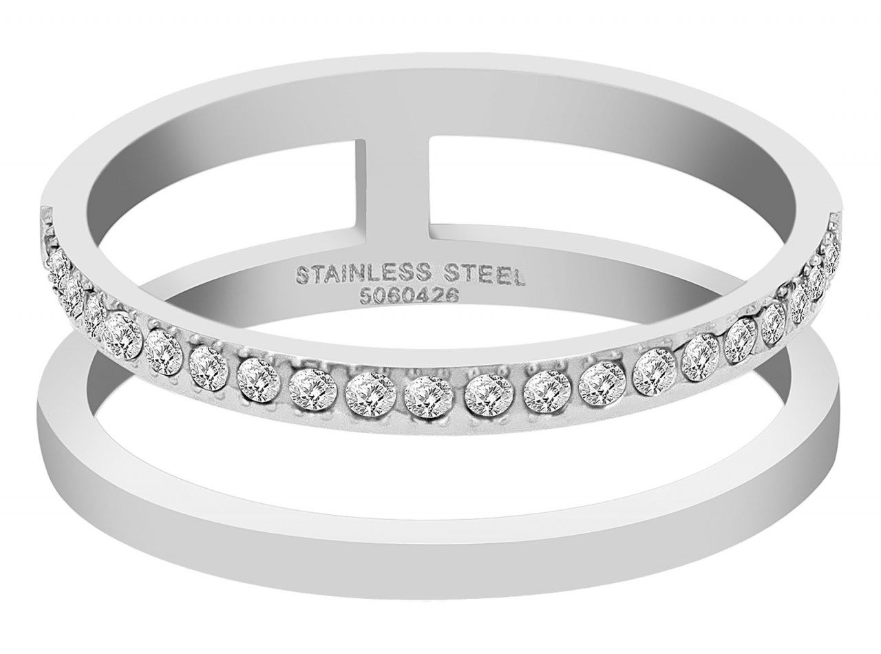 Feito de aço inoxidável de alta qualidade, o anel feminino promete não só prazer estético, mas também longevidade. O aço inoxidável é robusto, resistente à corrosão e mantém seu brilho radiante ao longo do tempo. A faixa dupla dá ao anel um toque moderno. Enquanto um dos trilhos tem acabamento brilhante, o outro é decorado com similites brilhantes. Está disponível nos tamanhos 54, 57 e 60 e, portanto, oferece um ajuste individual para diferentes tamanhos de anéis. Com largura de 7 mm e espessura de 1,5 mm, este anel apresenta um perfil equilibrado.