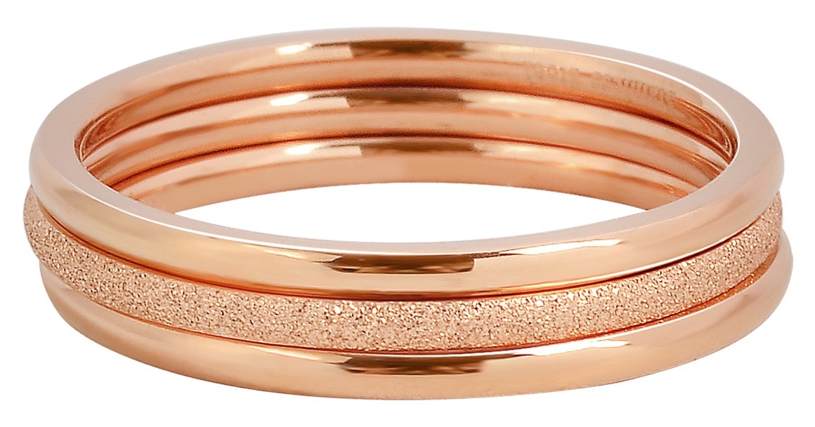 Os anéis femininos em ouro rosa da marca Praktik são feitos de aço inoxidável e estão disponíveis em diversos tamanhos de anel. O conjunto de três peças consiste em três anéis delicados que podem ser usados ​​juntos ou individualmente. Os anéis têm largura e espessura de 1 mm e acabamento superficial altamente polido. Um anel do conjunto de três é jateado e tem uma superfície particularmente fosca. Em suma, o conjunto de anéis é versátil e atemporal e chama a atenção tanto individualmente quanto em combinação.