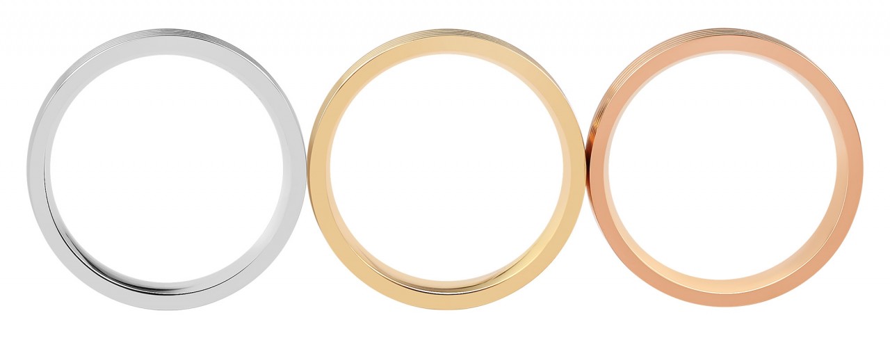 Os anéis femininos são feitos de aço inoxidável e estão disponíveis em tamanhos de anel de 54 a 62. Têm largura de 4 mm e espessura de material de 2 mm. O conjunto consiste em três anéis que podem ser usados ​​juntos em combinação ou individualmente. Os anéis têm uma aparência altamente polida e estriada. Além disso, os anéis são curvados, tornando-os confortáveis ​​de usar e podem ter pequenas gravações individuais no interior. Em suma, o conjunto de anéis é versátil e atemporal e chama a atenção tanto individualmente quanto em combinação.