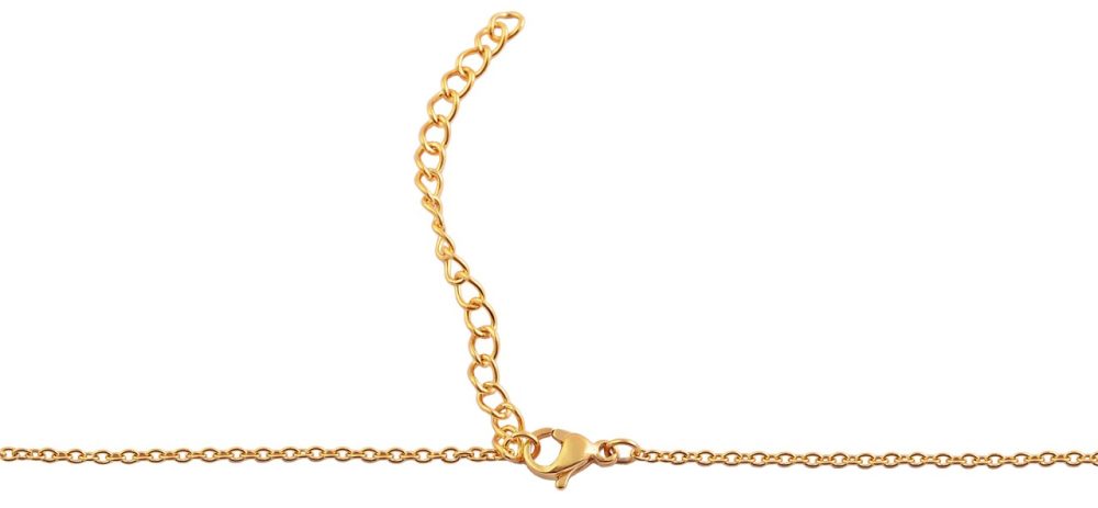 O colar âncora da marca Praktik é feito de aço inoxidável e tem cor dourada. O material garante uma longa vida útil do colar. A joia de destaque é refinada com banho de ouro IP. Além disso, a superfície é altamente polida, o que significa que a corrente brilha com um toque elegante. A corrente é presa na nuca por um fecho lagosta de aço inoxidável. A corrente está disponível em diversos comprimentos e pode ser estendida em até 5 cm se necessário, tornando-a ajustável individualmente. A espessura da corrente é de 1 mm.