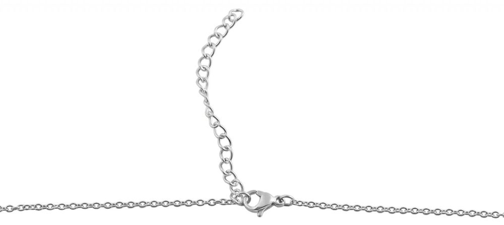 O colar prateado da marca Akzent é feito em aço inoxidável com padrão de âncora. Pode ser aberto e fechado com um mosquetão prateado, também feito em aço inoxidável. Na ponta da corrente é fixada uma corrente extensora de 5 cm de comprimento, que permite variar o comprimento do colar em até 5 cm e, portanto, pode ser adaptado a qualquer look. Está disponível nos comprimentos de 45 cm, 50 cm, 60 cm, 70 cm e 80 cm. A espessura do material é de 1 mm. Graças ao material robusto e ao acabamento de alta qualidade, o colar simples promete uma longa vida útil.