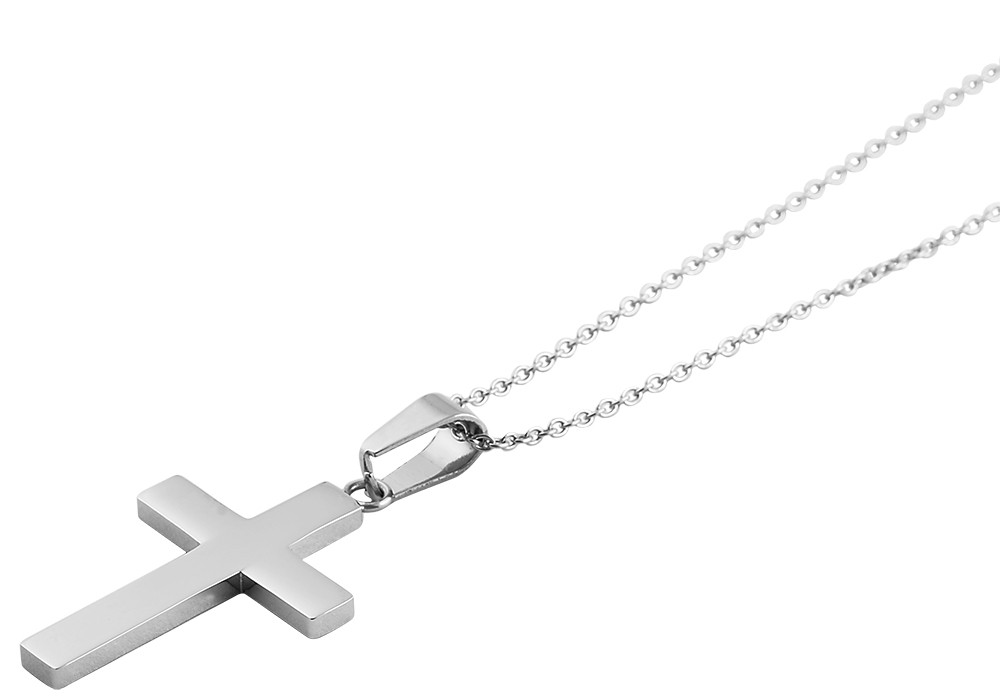 O colar com padrão de âncora prateado da marca Akzent é feito em aço inoxidável. A corrente é presa na nuca por um fecho lagosta em aço inoxidável. O comprimento da corrente é de 45 cm e pode ser ampliado em 5 cm se necessário. A espessura da corrente é de 1 mm. O colar traz ainda um pingente de cruz, também feito em aço inoxidável, que é brilhante na frente e fosco atrás. Além disso, oferece espaço suficiente para ser gravado. O tamanho do pingente é 34 mm de comprimento, 21 mm de largura e 2 mm de espessura.