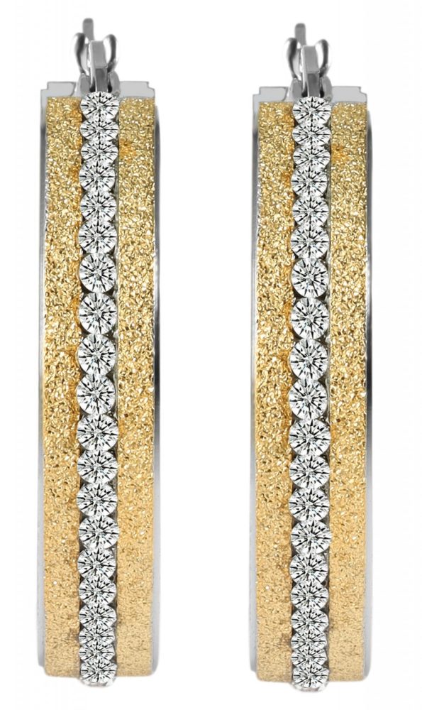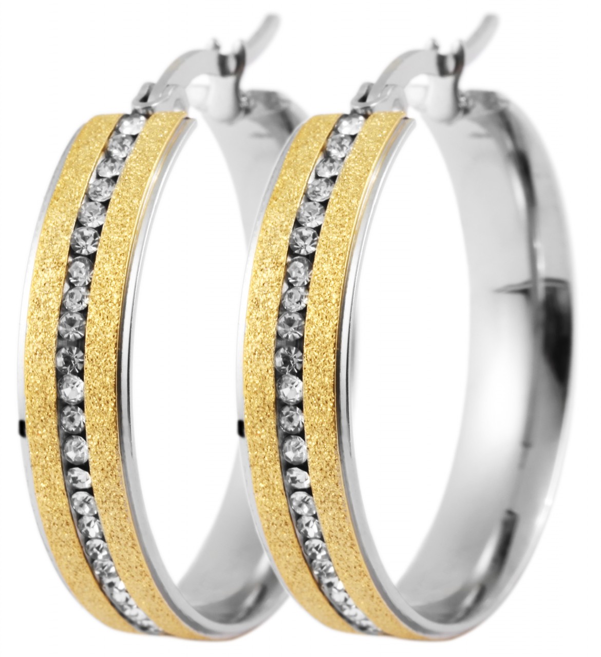 Os brincos de argola da marca Accent são feitos de aço inoxidável e decorados com 43 pedras simil brilhantes. O visual polido e o acabamento brilhante fazem dos brincos um verdadeiro atrativo que atrai muitos olhares. Além disso, as bordas externas do brinco são jateadas. Isso cria uma aparência fosca. Com um fecho de aço inoxidável, os brincos podem ser facilmente fixados no orifício da orelha. O tamanho resulta de um diâmetro de 26 mm, largura de 6 mm e espessura de 2 mm.
