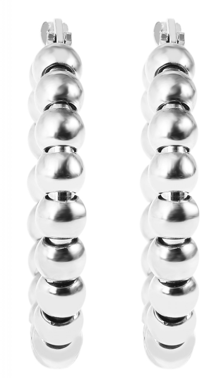 Os brincos de argola femininos da marca Praktik são feitos de aço inoxidável e estão disponíveis em diversas cores. Apresentam-se num design moderno de bola e impressionam pelo seu aspecto brilhante e lúdico. As bolinhas são alinhadas como pequenas pérolas para formar um atraente crioulo. Fecham-se com um prático fecho de clipe que evita que os brincos caiam. O tamanho resulta de um diâmetro de 20 mm, largura de 4 mm e espessura de 4 mm.